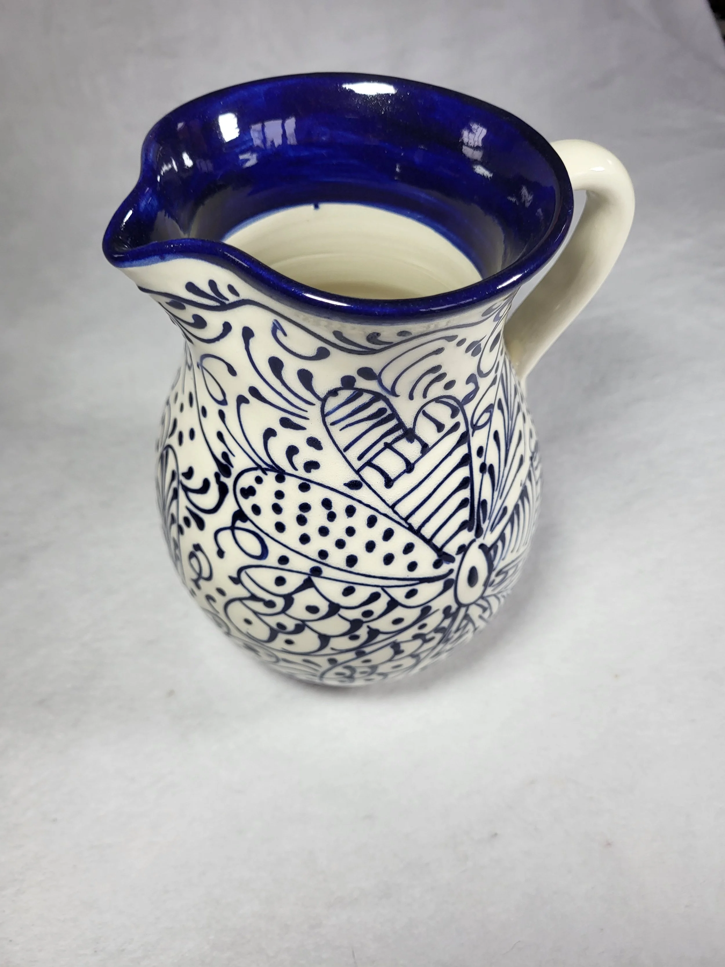 This floral-themed hand-painted Spanish jug is great for sangria, wine, water or as a flower vase.