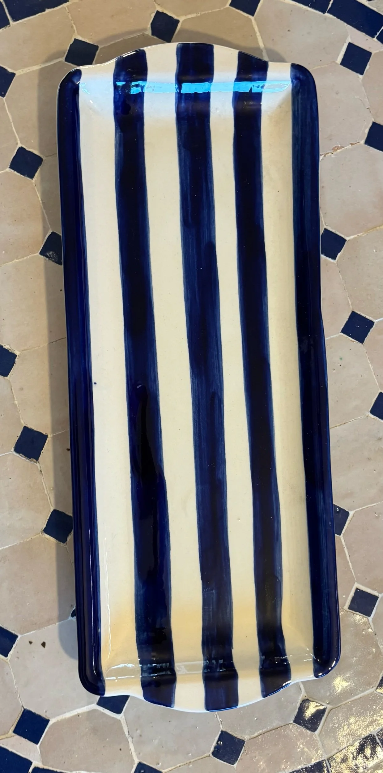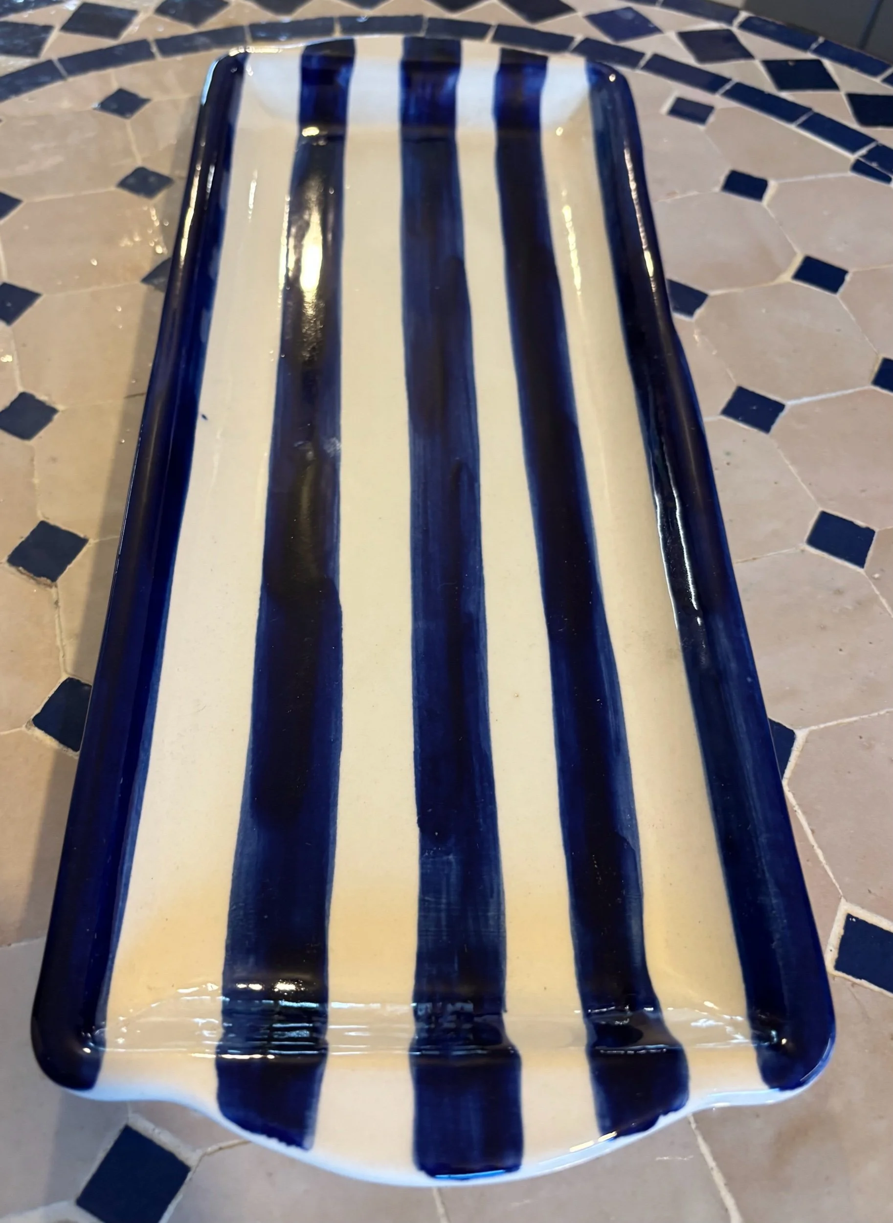 Spanish pottery rectangular hand-painted blue and white serving platter