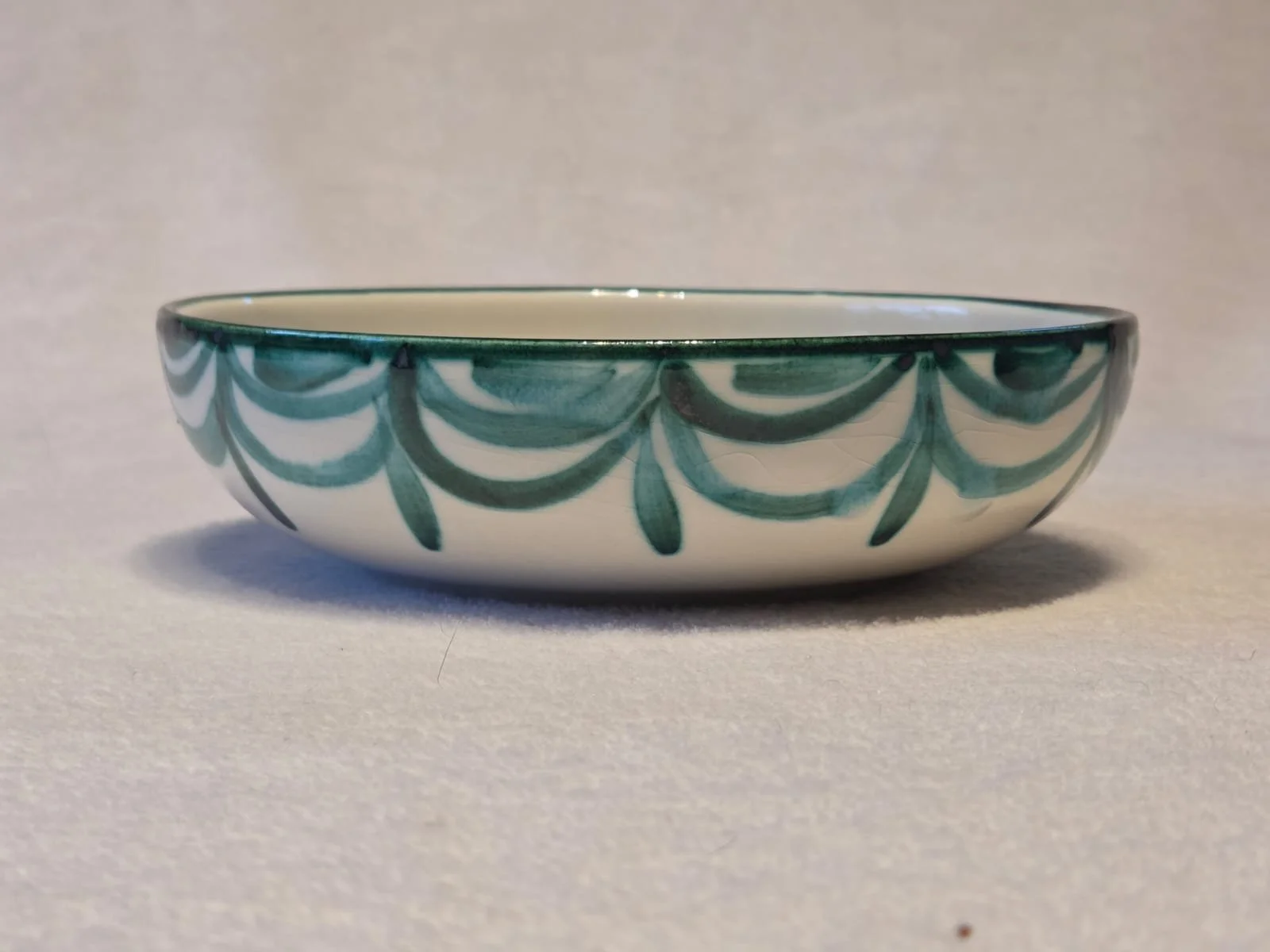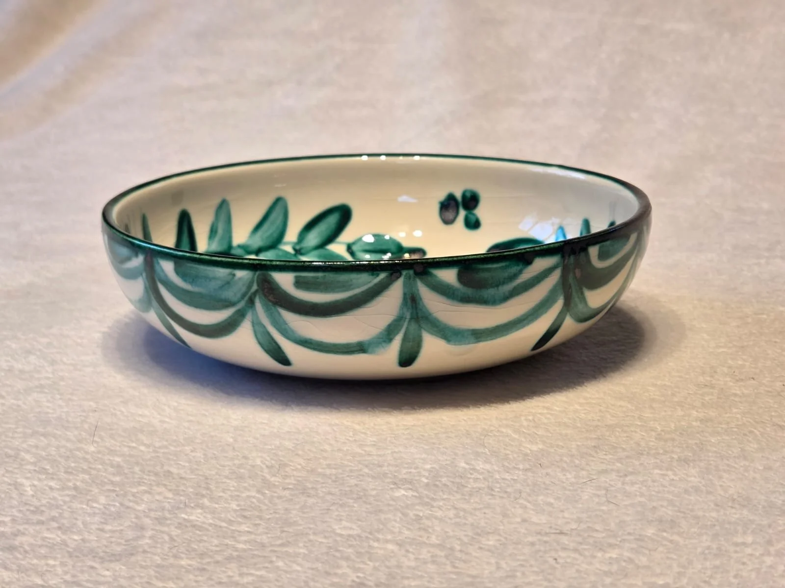 Large Spanish green and white splatter salad bowl Fruit bowl, large handpainted serving bowl