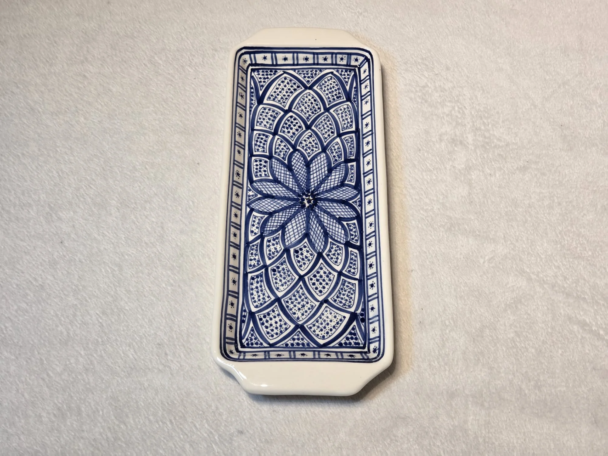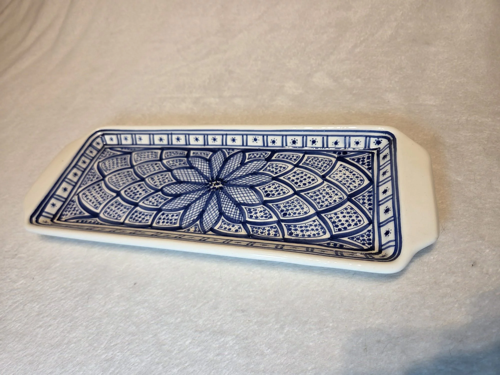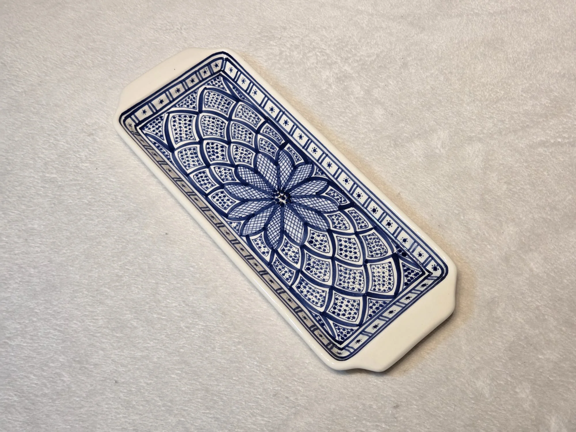 Tunisian handpainted platter - rectangular blue and white serving plate, canapé plate, dinner party serving plate.