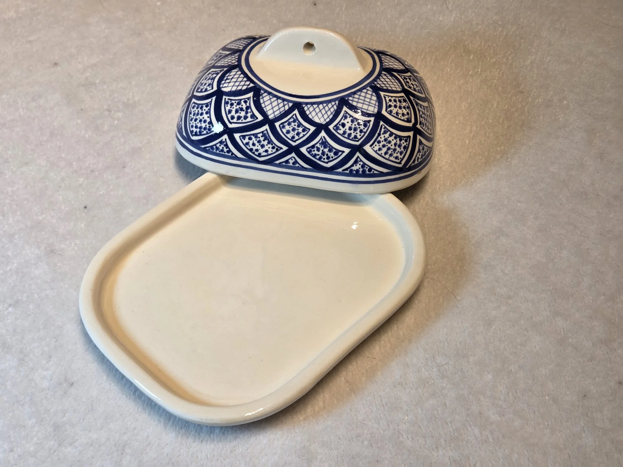 Tunisian butter dish - Handpainted and handmade blue and white butter holder