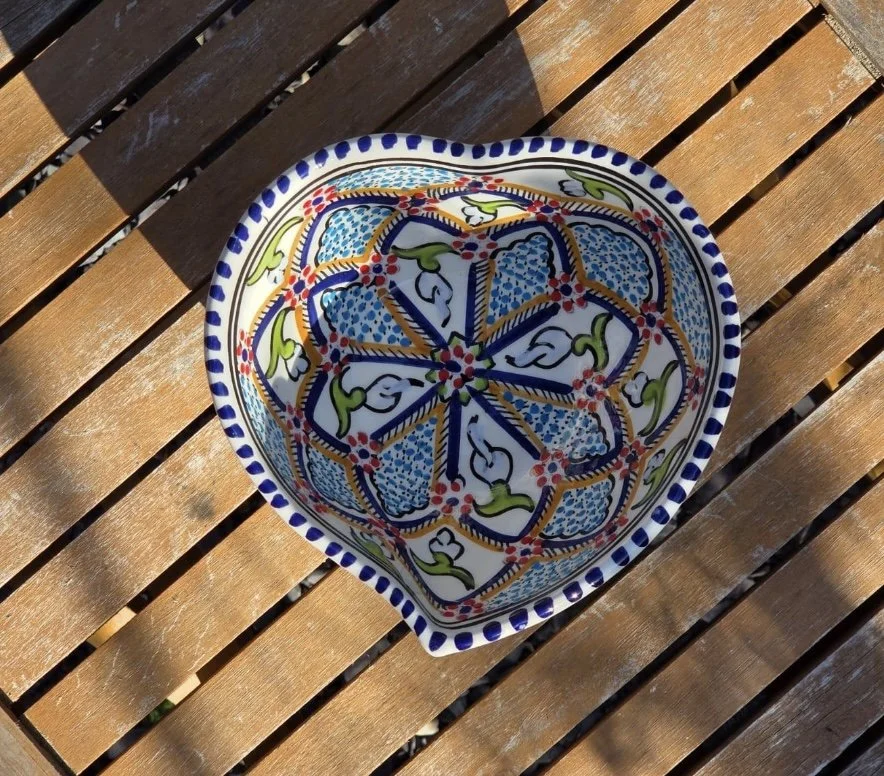 Handmade handpainted plate - beautiful heart plate. Tunisian pottery