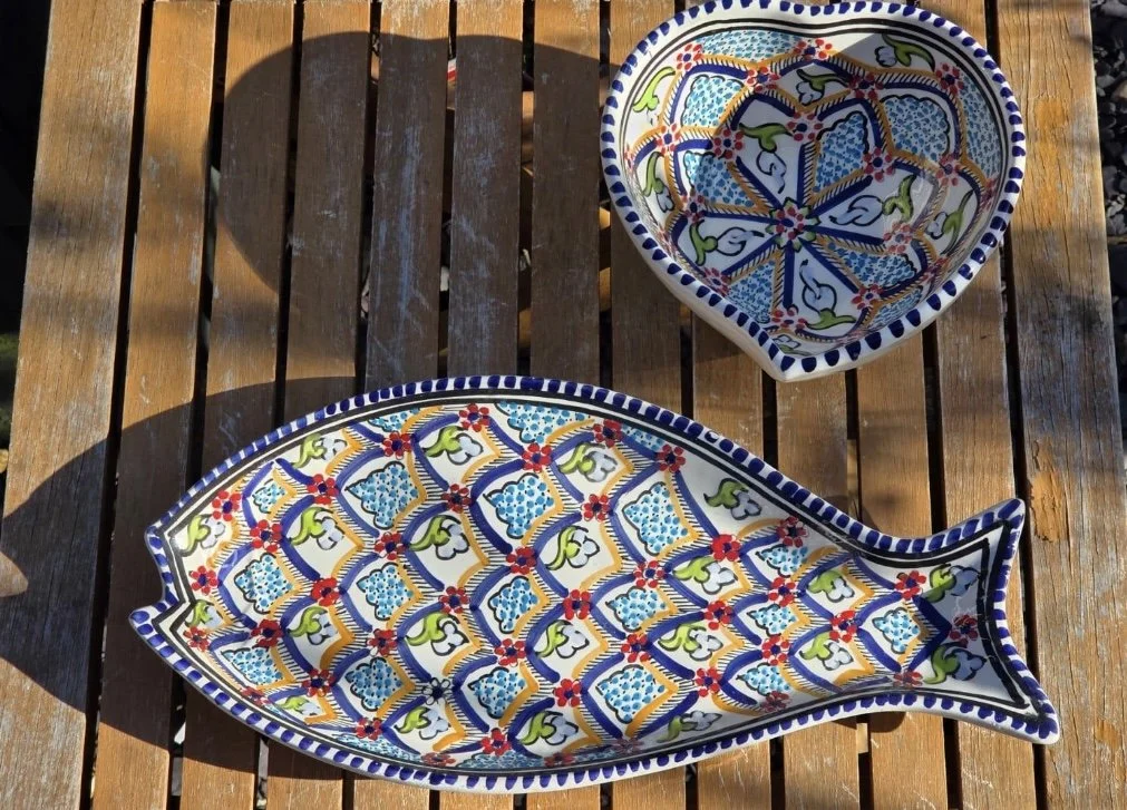 Tunisian handpainted platter - fish serving plate