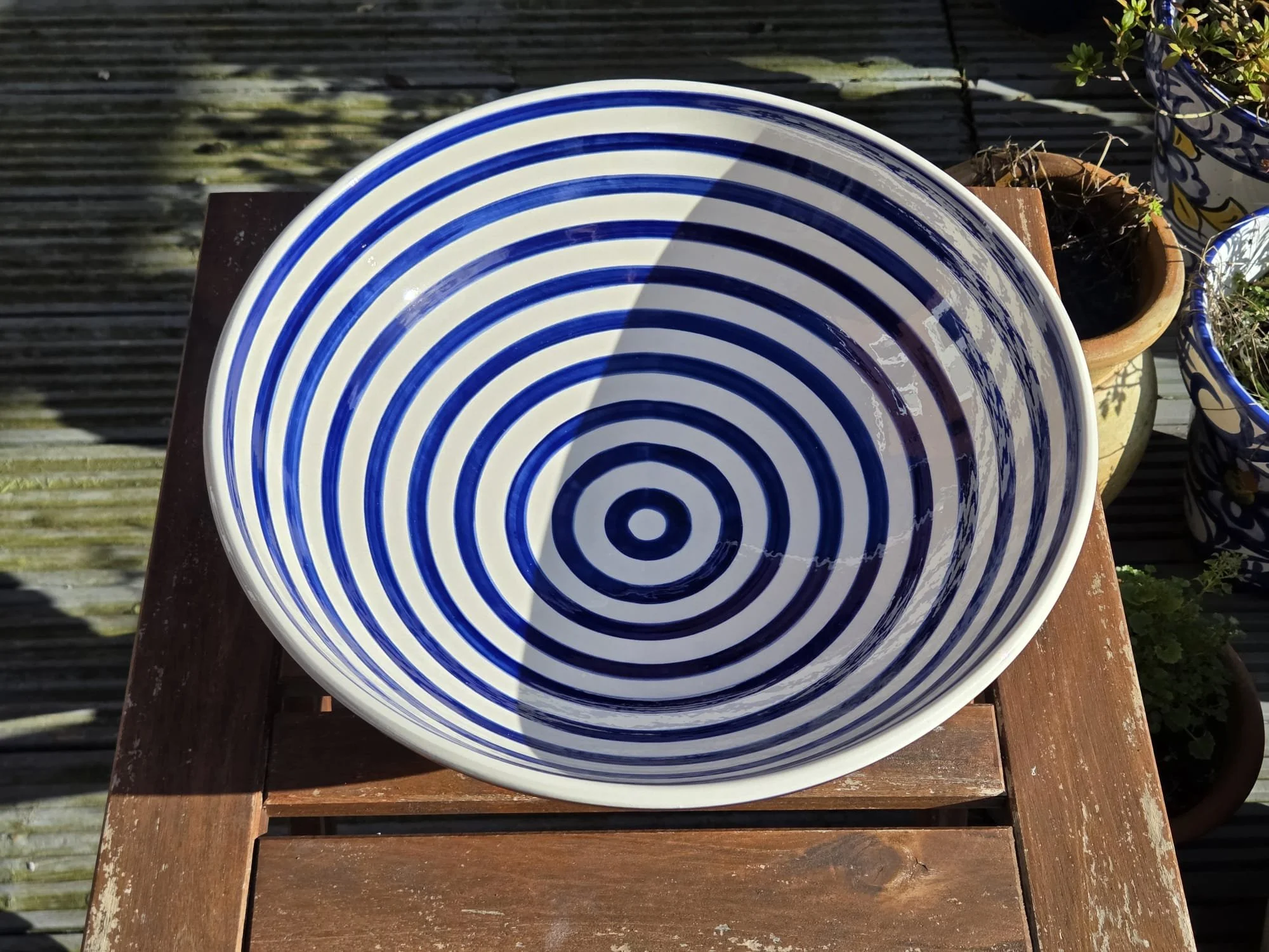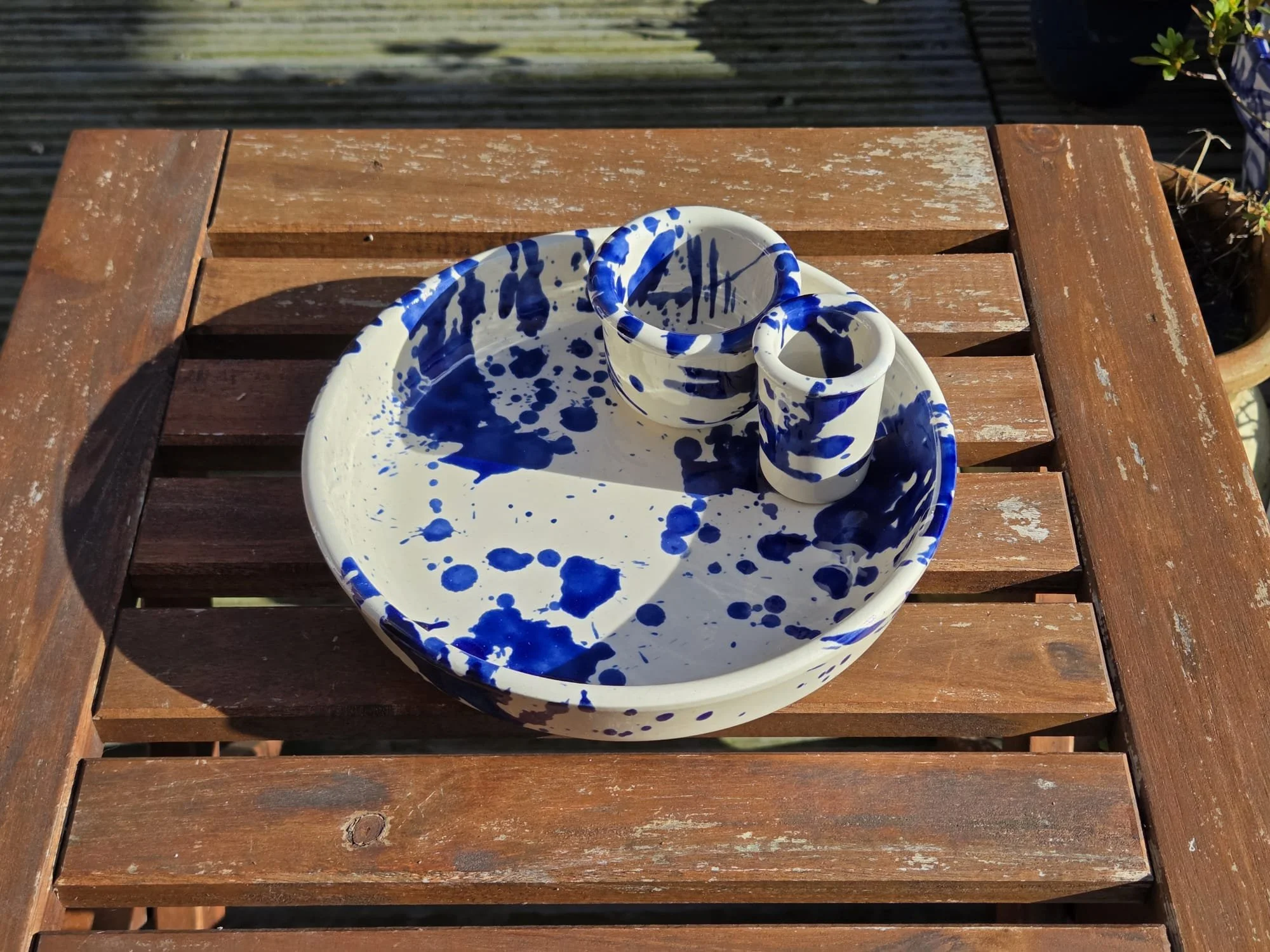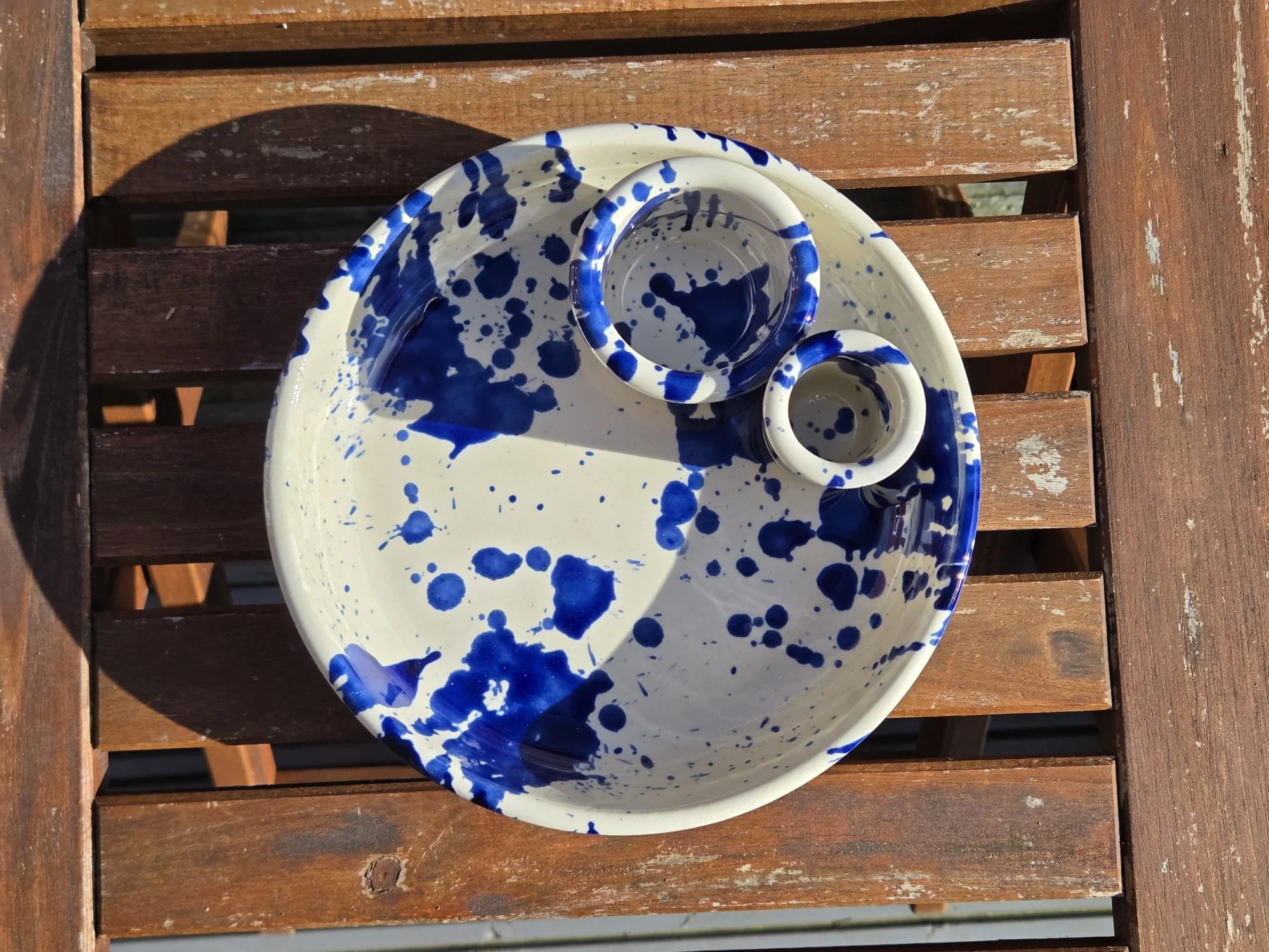 Spanish splatter platter, hand-painted large blue and white plate