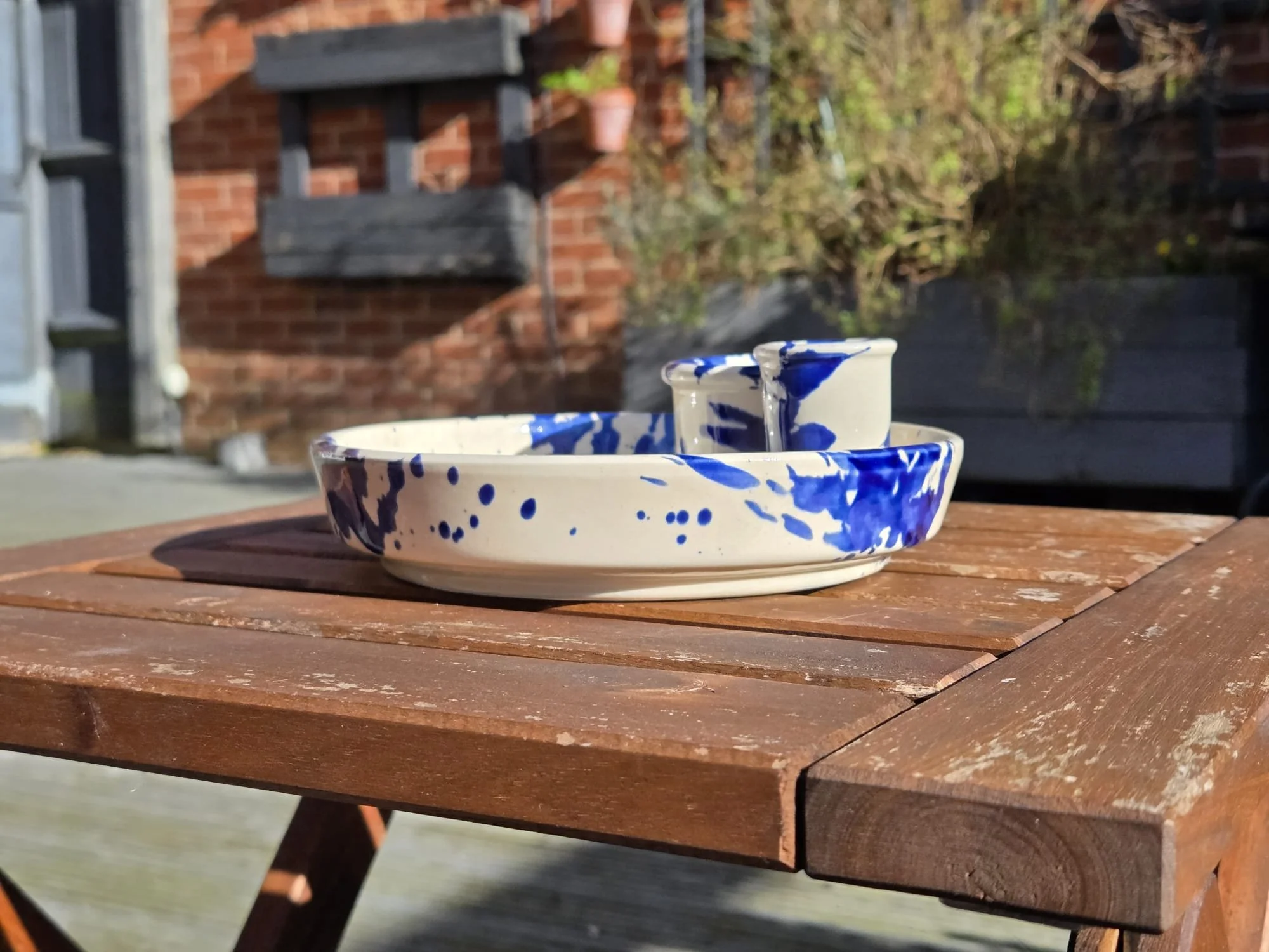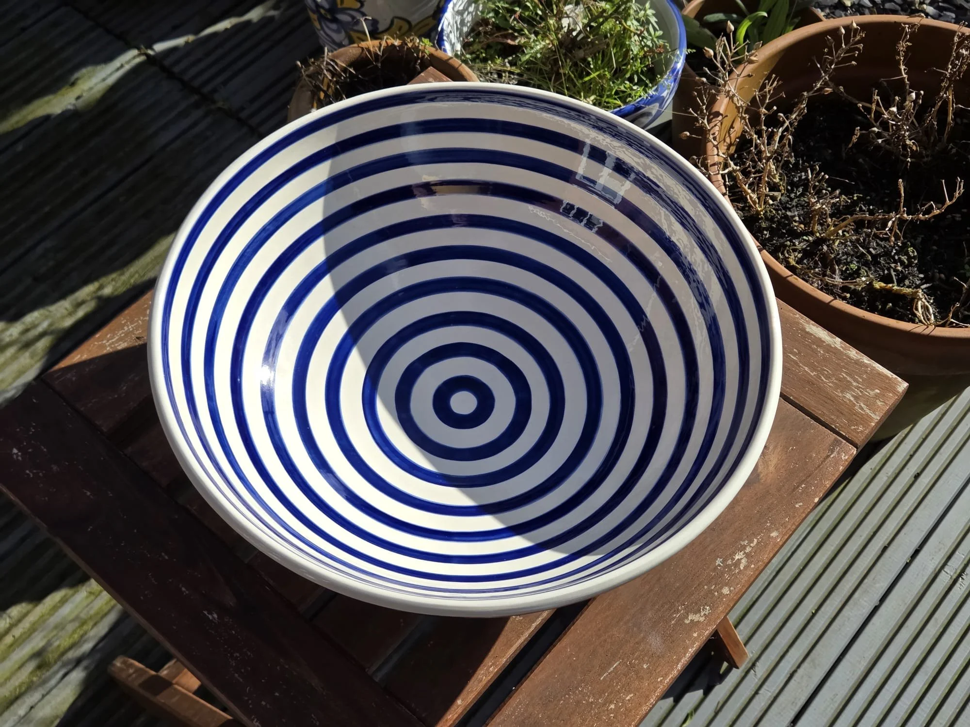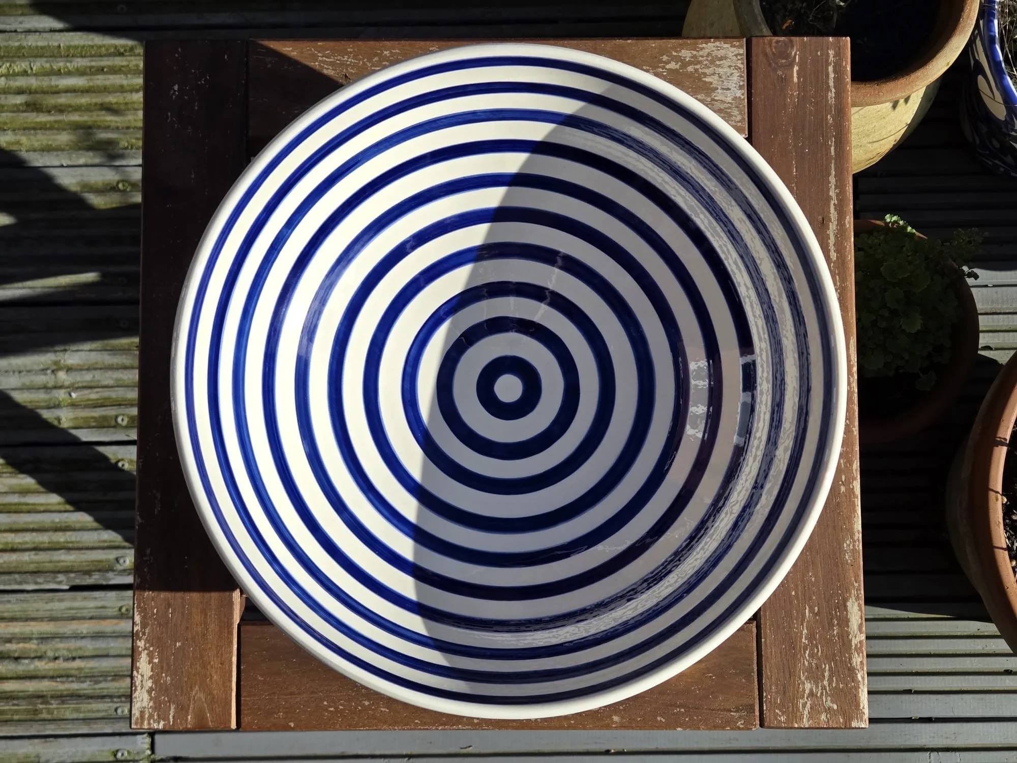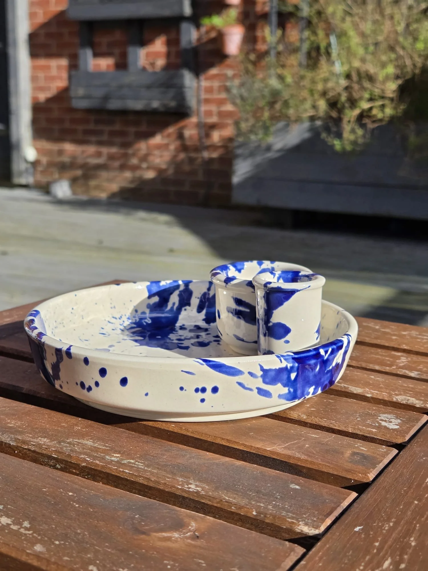 Spanish splatter platter, hand-painted large blue and white plate