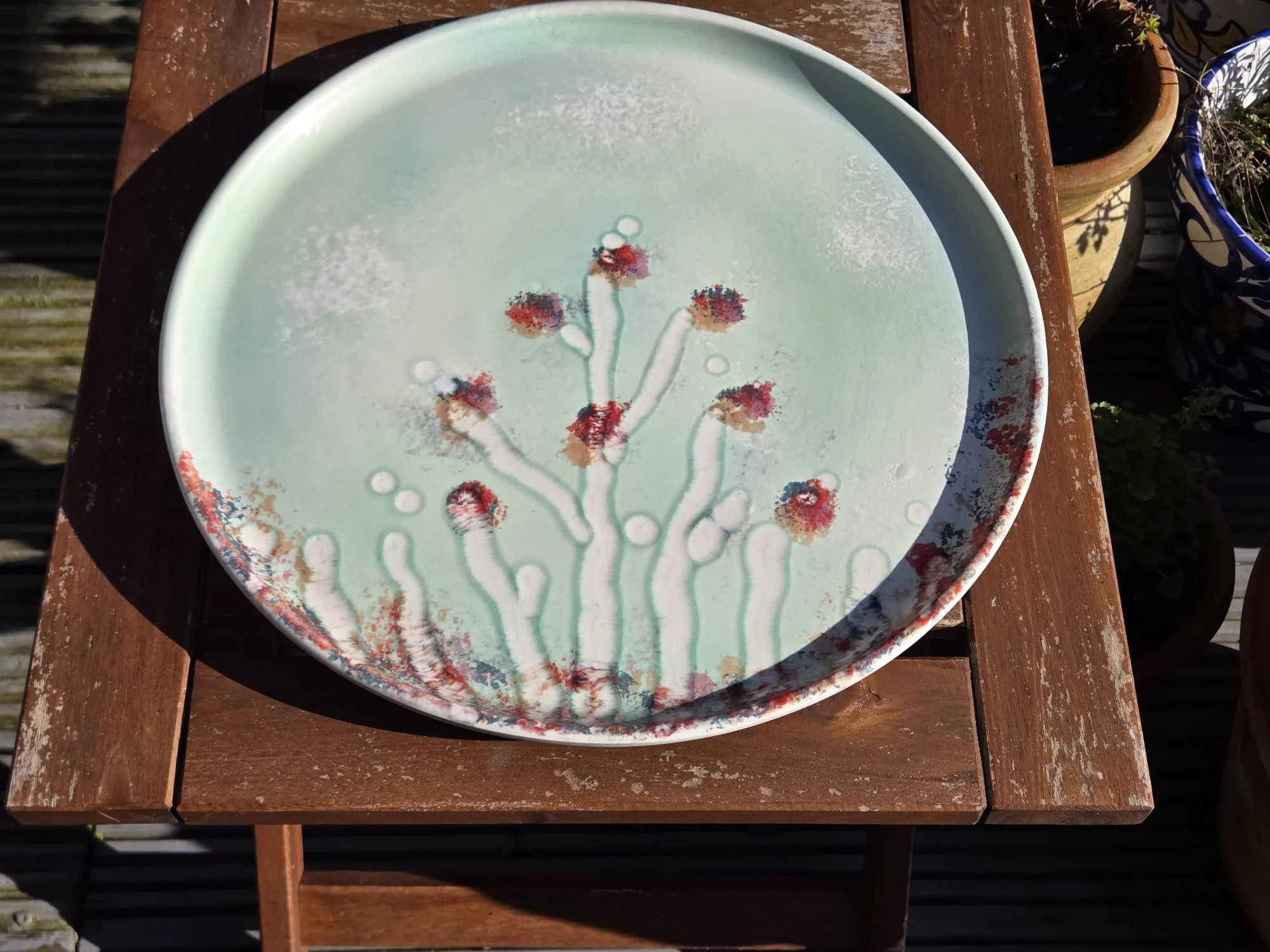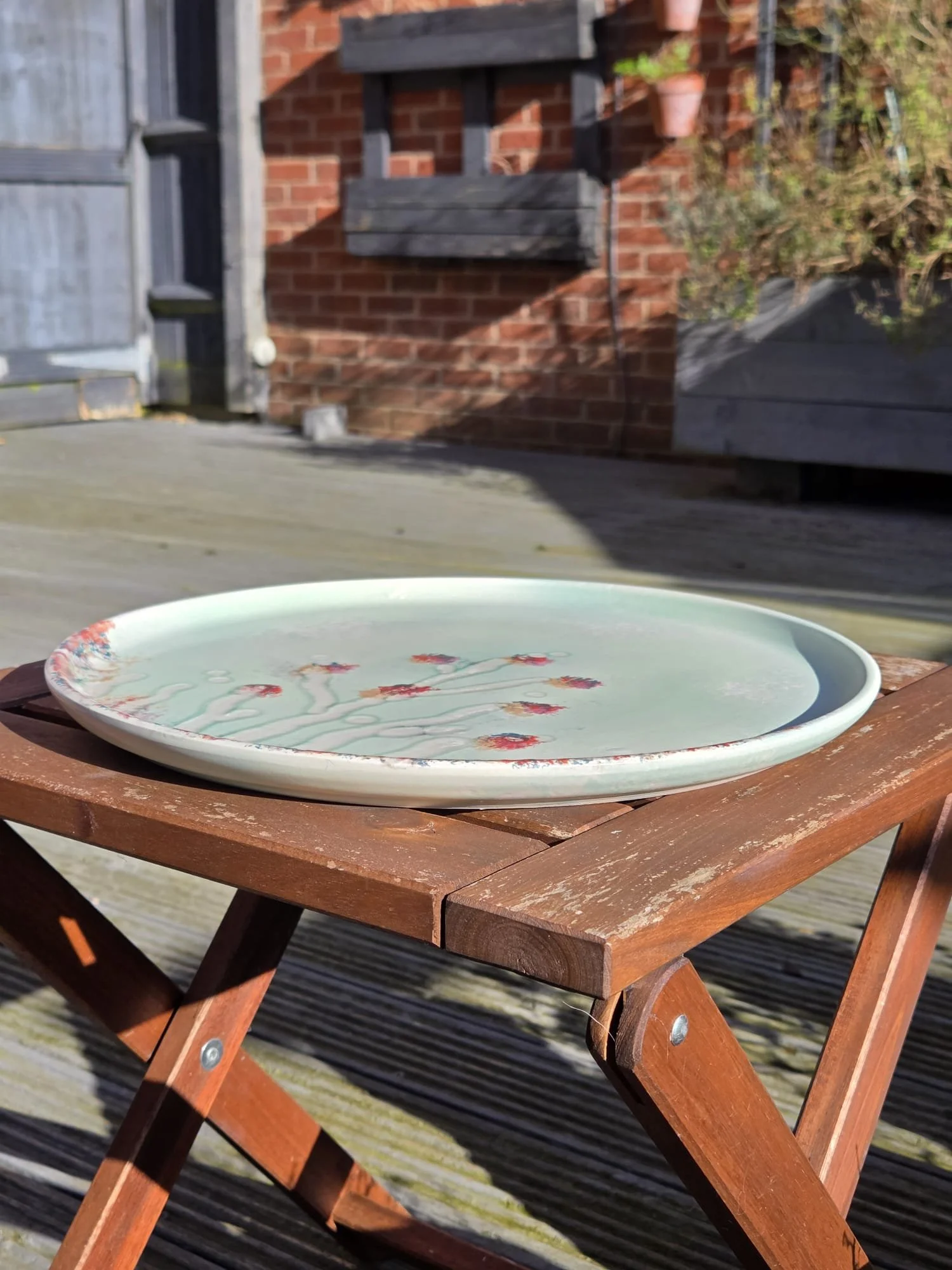 Handmade handpainted plate - beautiful colourful serving plate. Tunisian pottery