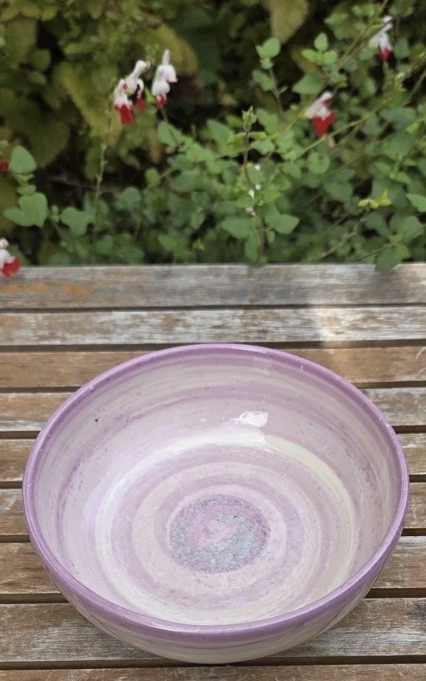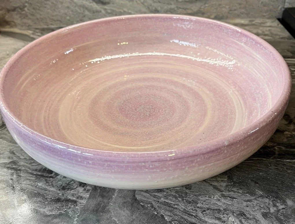 Spanish pottery hand-painted pink and white splatter bowl.
