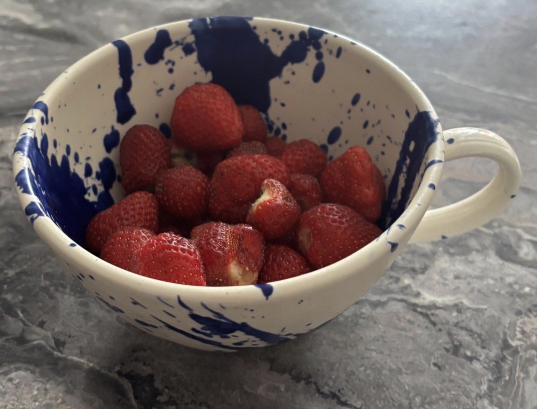 Blue and white Spanish hand-painted splatter pattern butter dish