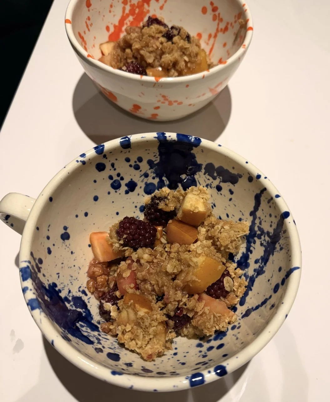 Spanish pottery cups - two handpainted colourful splatter pattern teacups / coffee mugs