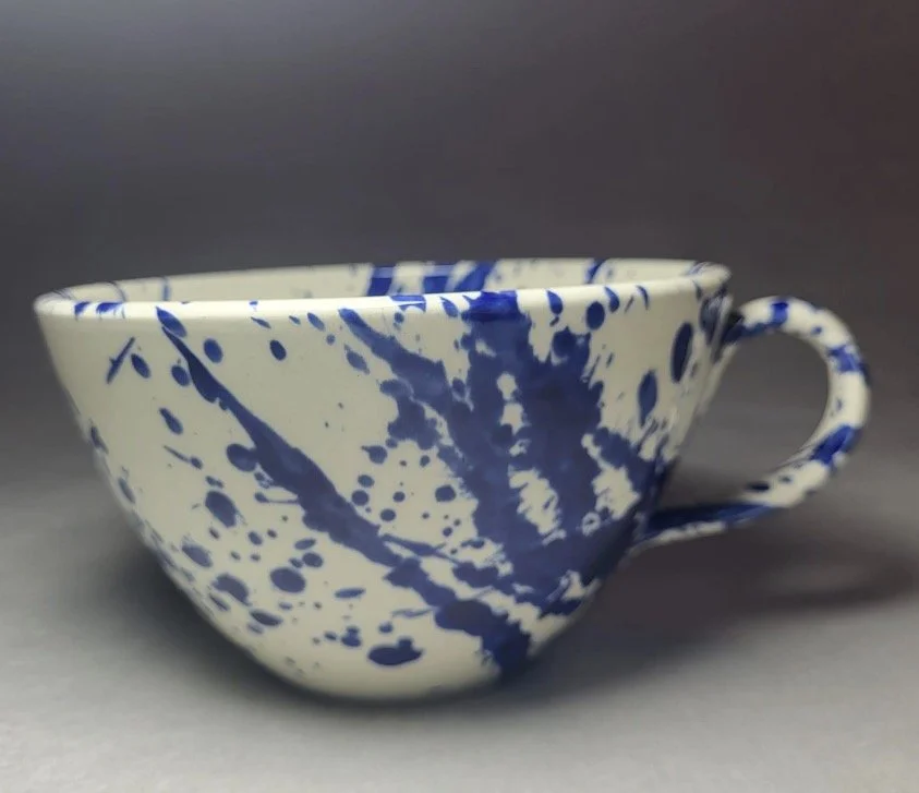 Spanish pottery cup - handpainted colourful splatter pattern teacup / coffee mug