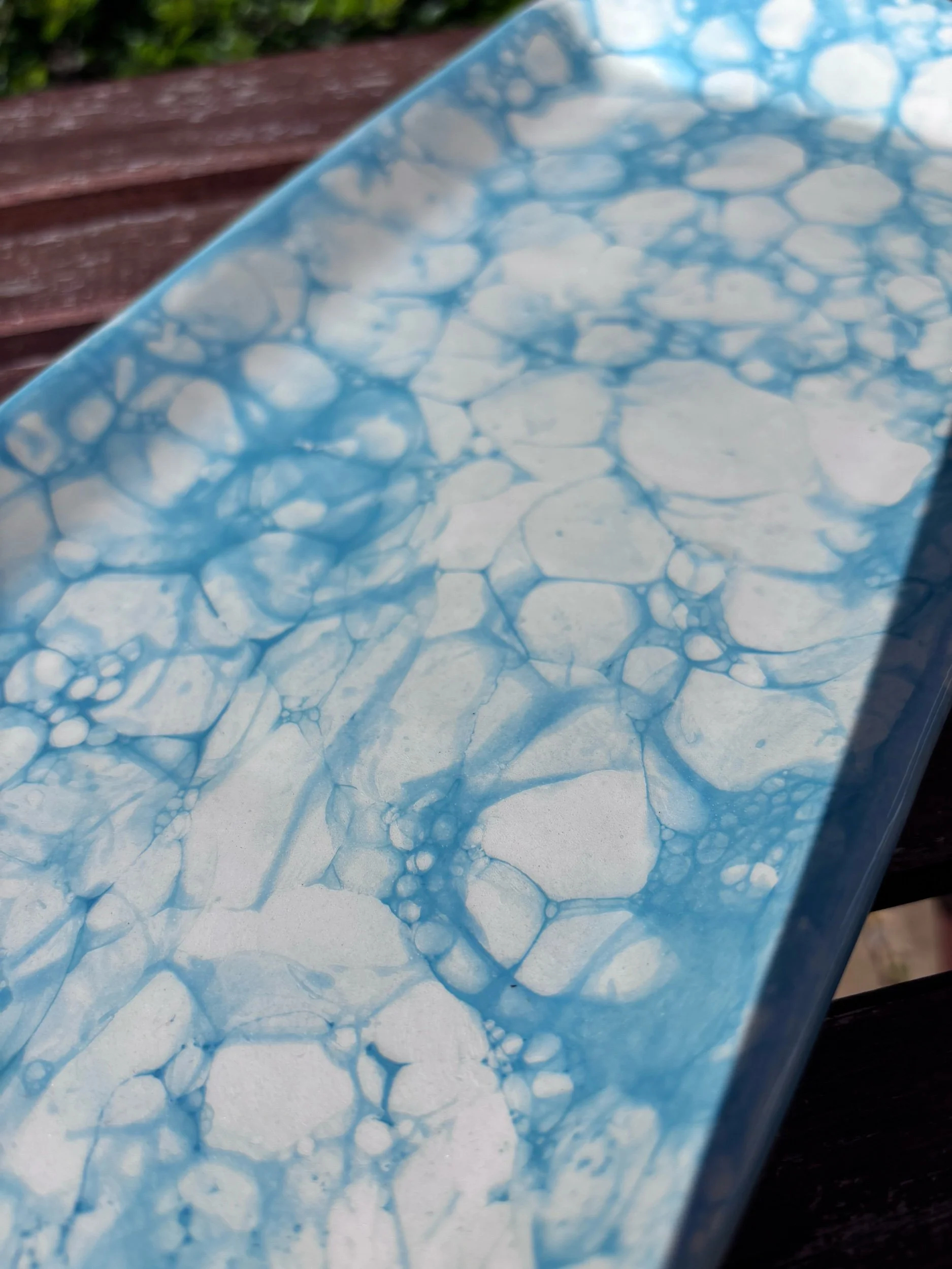 Please note: As these are hand-painted, slight variations in the bubble density and colour tone are a hallmark of their authentic, artisan nature! πΏπ Please message me if you would like to choose the exact one I send to you. I have lots of matching items and also a darker blue colour.