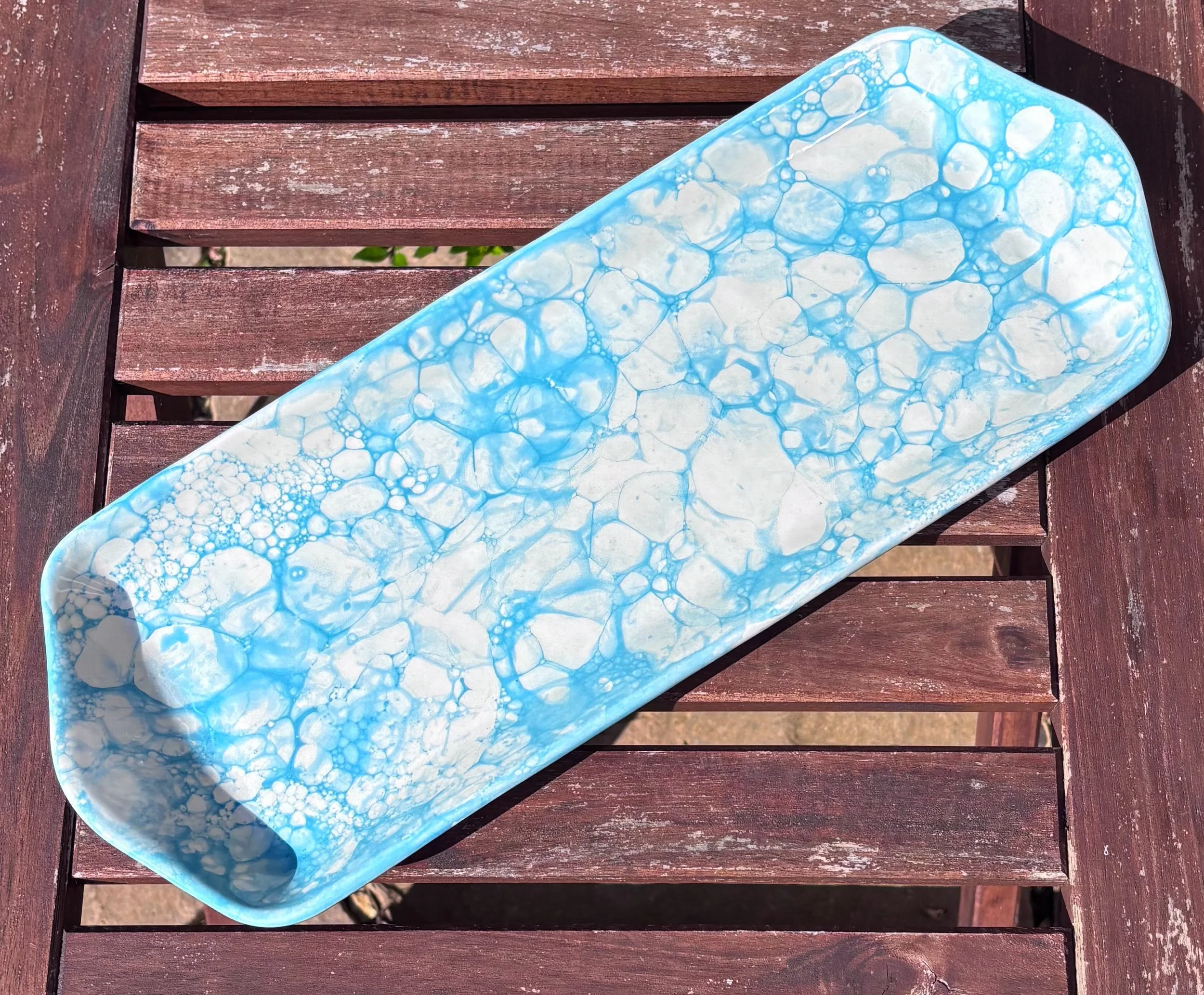 Dive into the Mediterranean with this stunning bubble-glaze platter! ππ₯