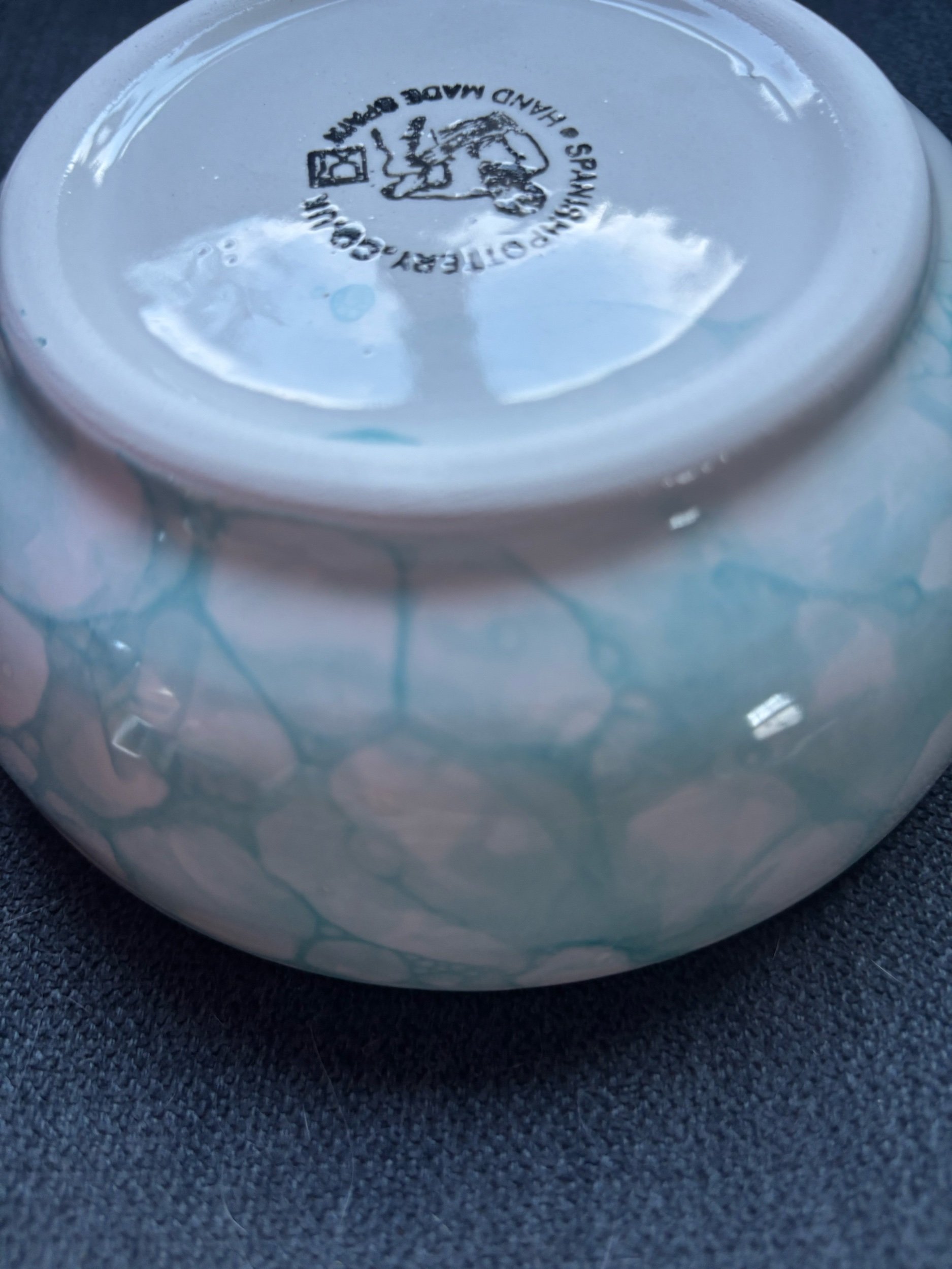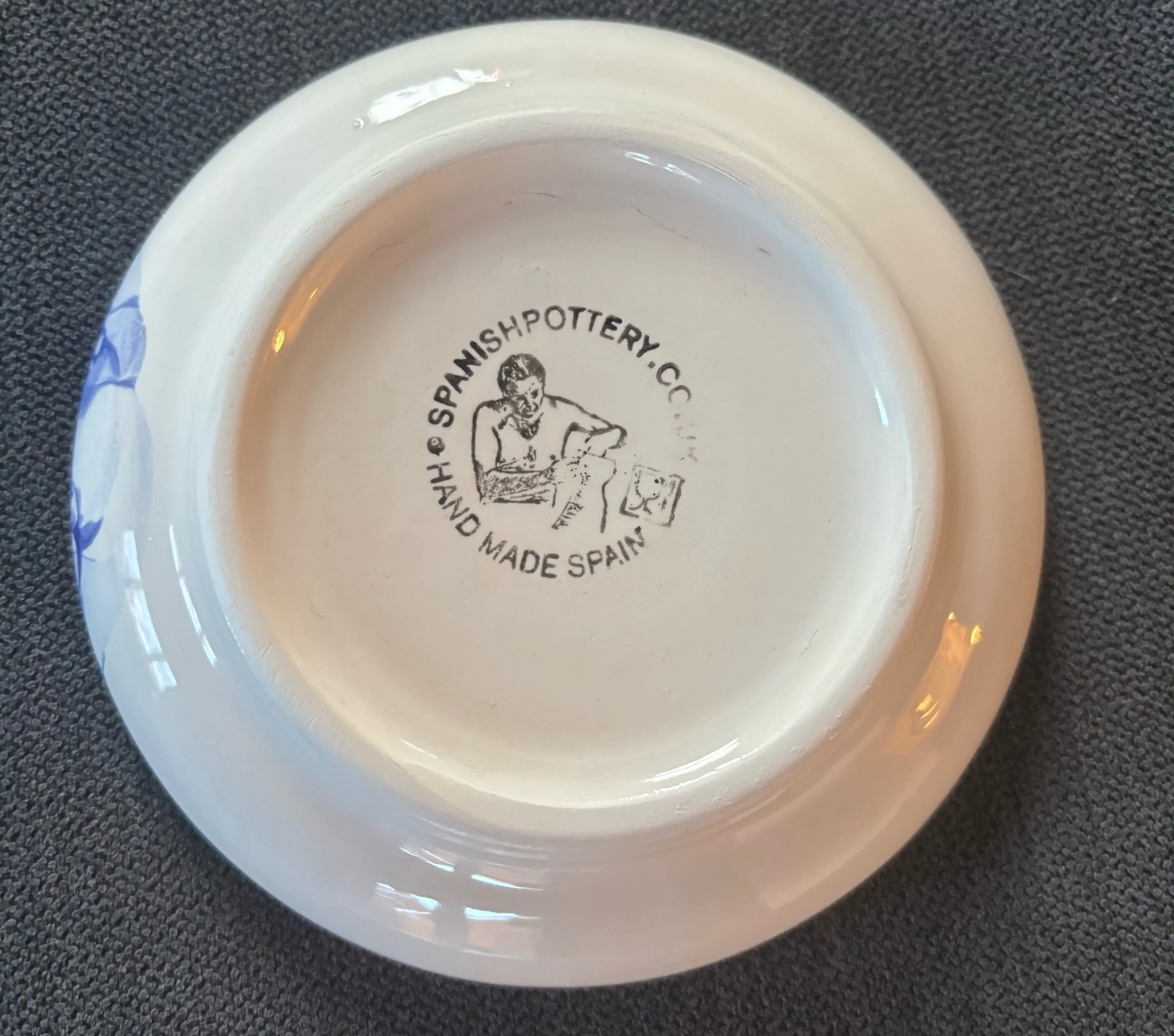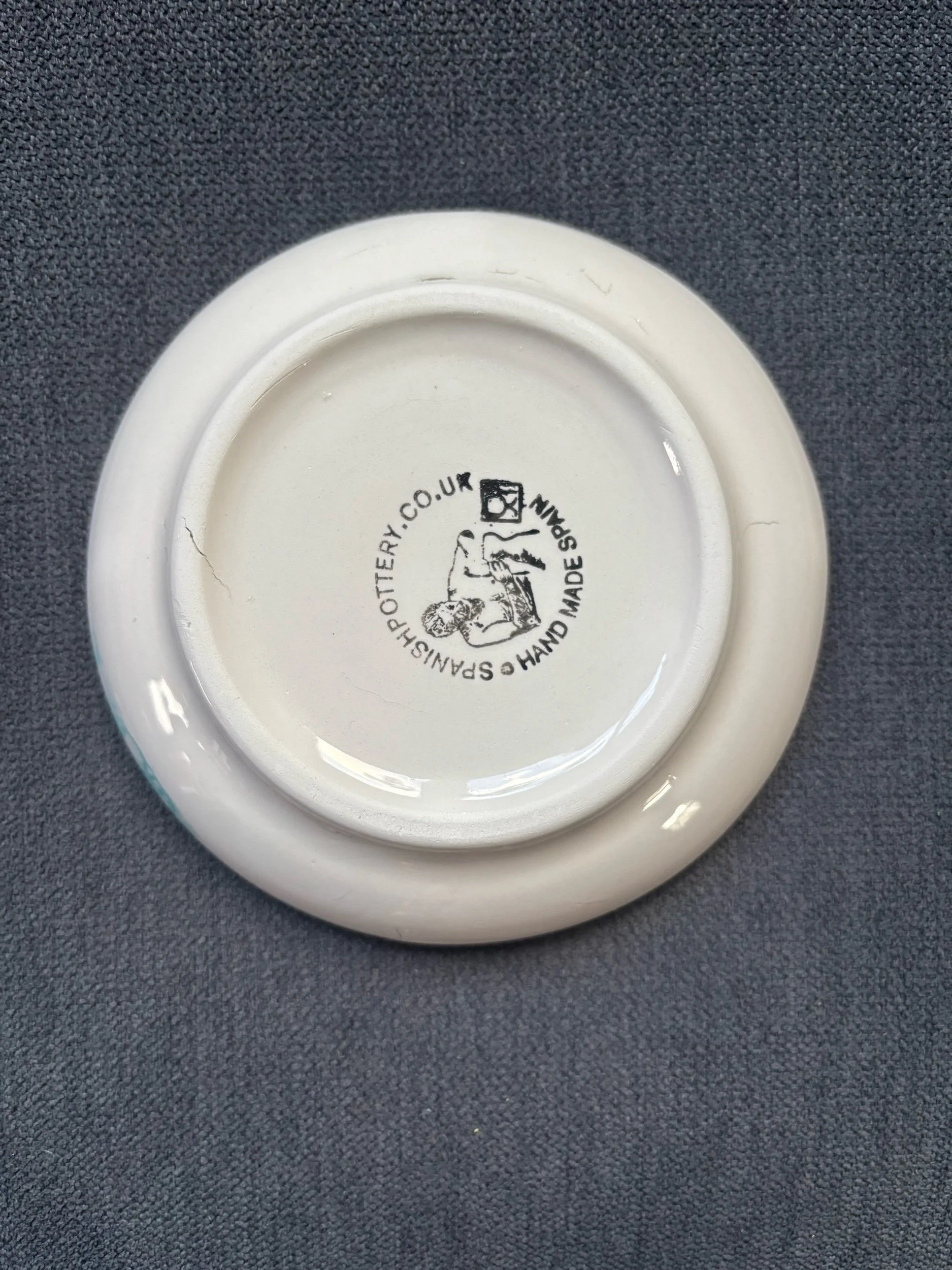It was handmade in the south of Spain and measures 15 cm across and 5cm in height. It is dishwasher and microwave safe. We have it in different patterns also and we also have matching plates and bowls. Please feel free to message us if you have any questions.