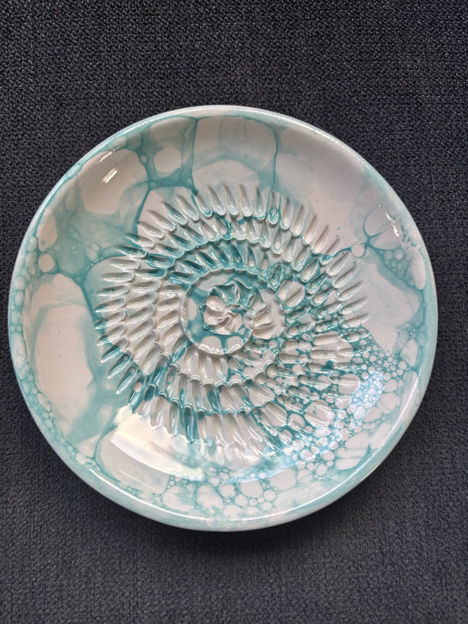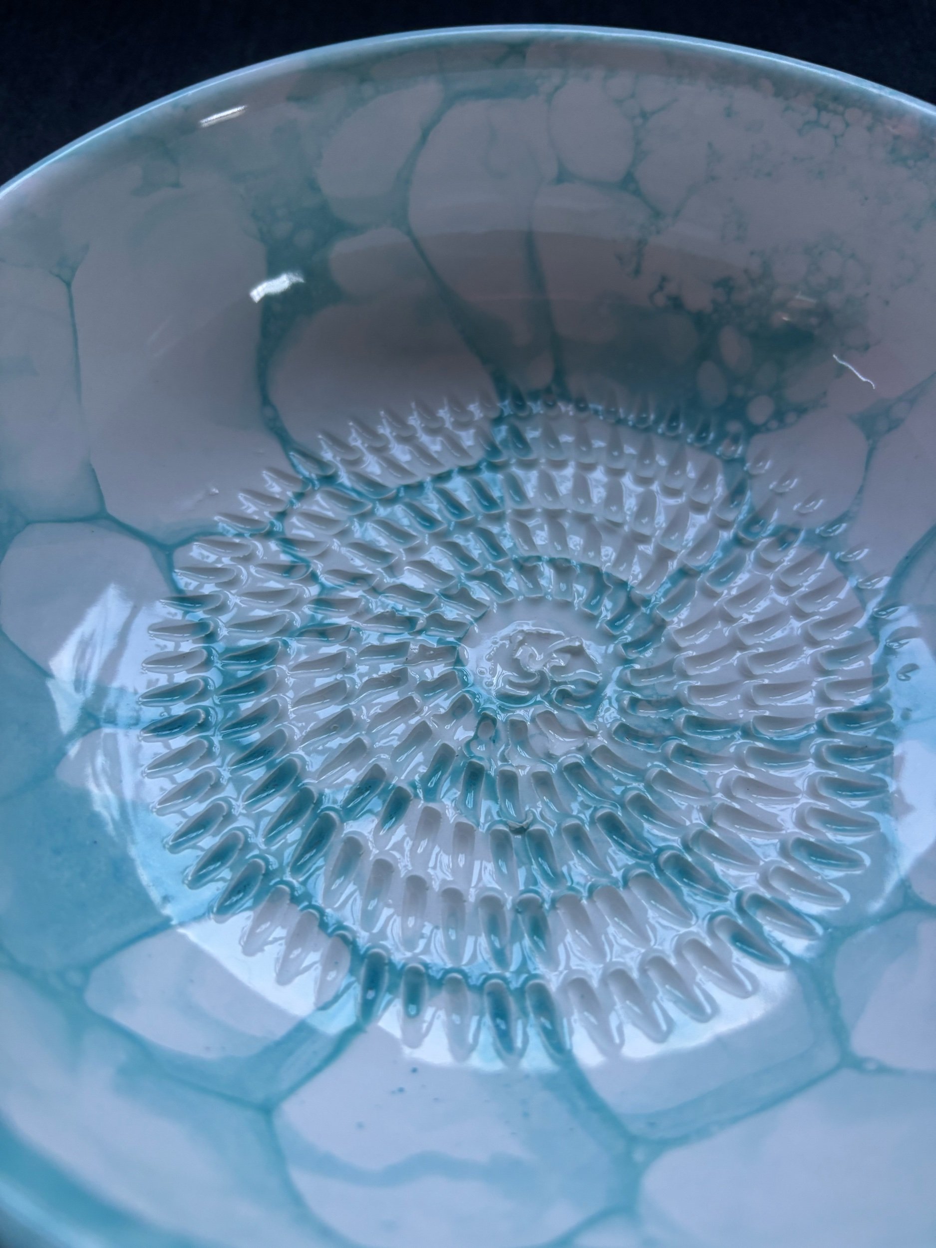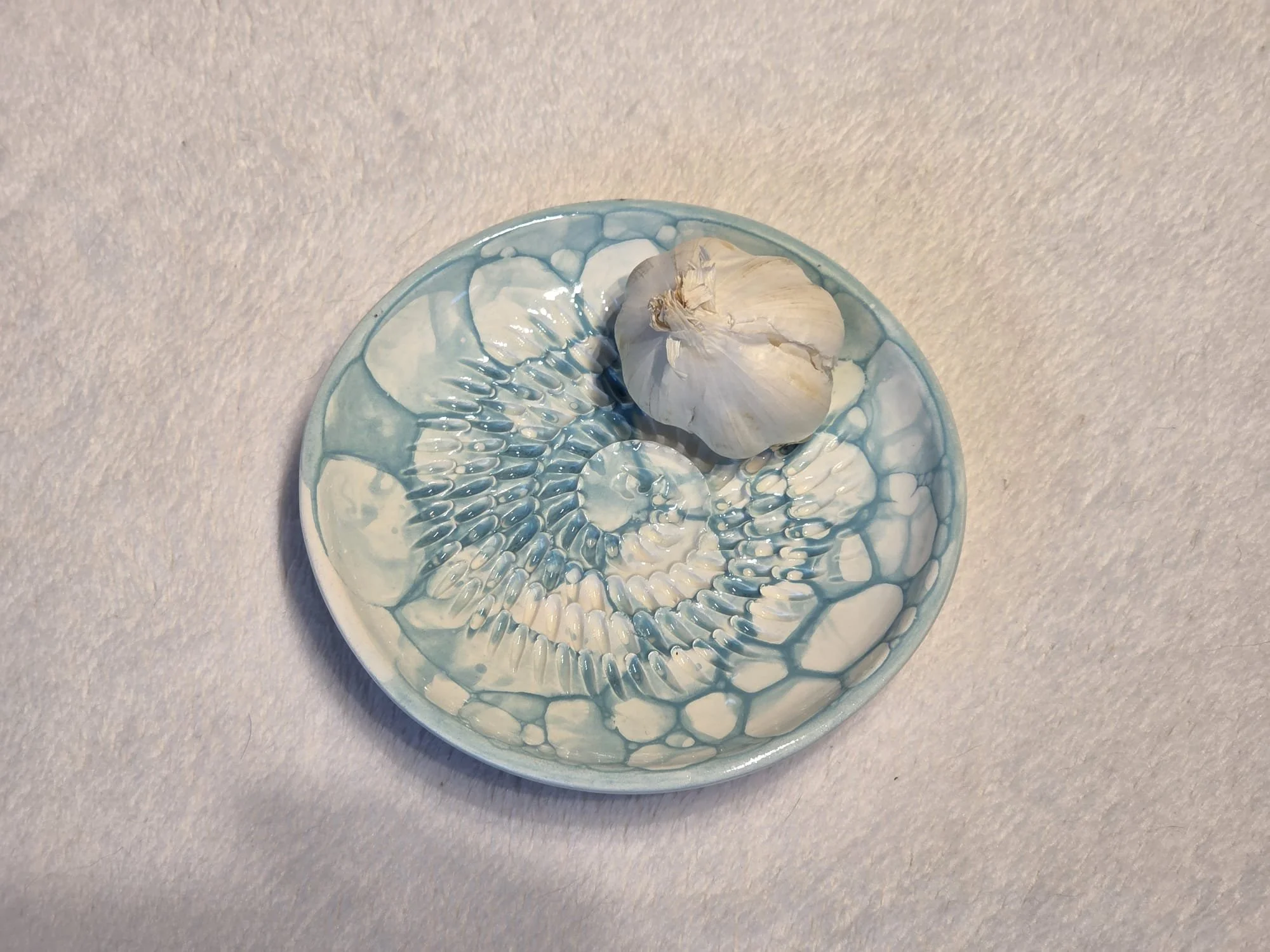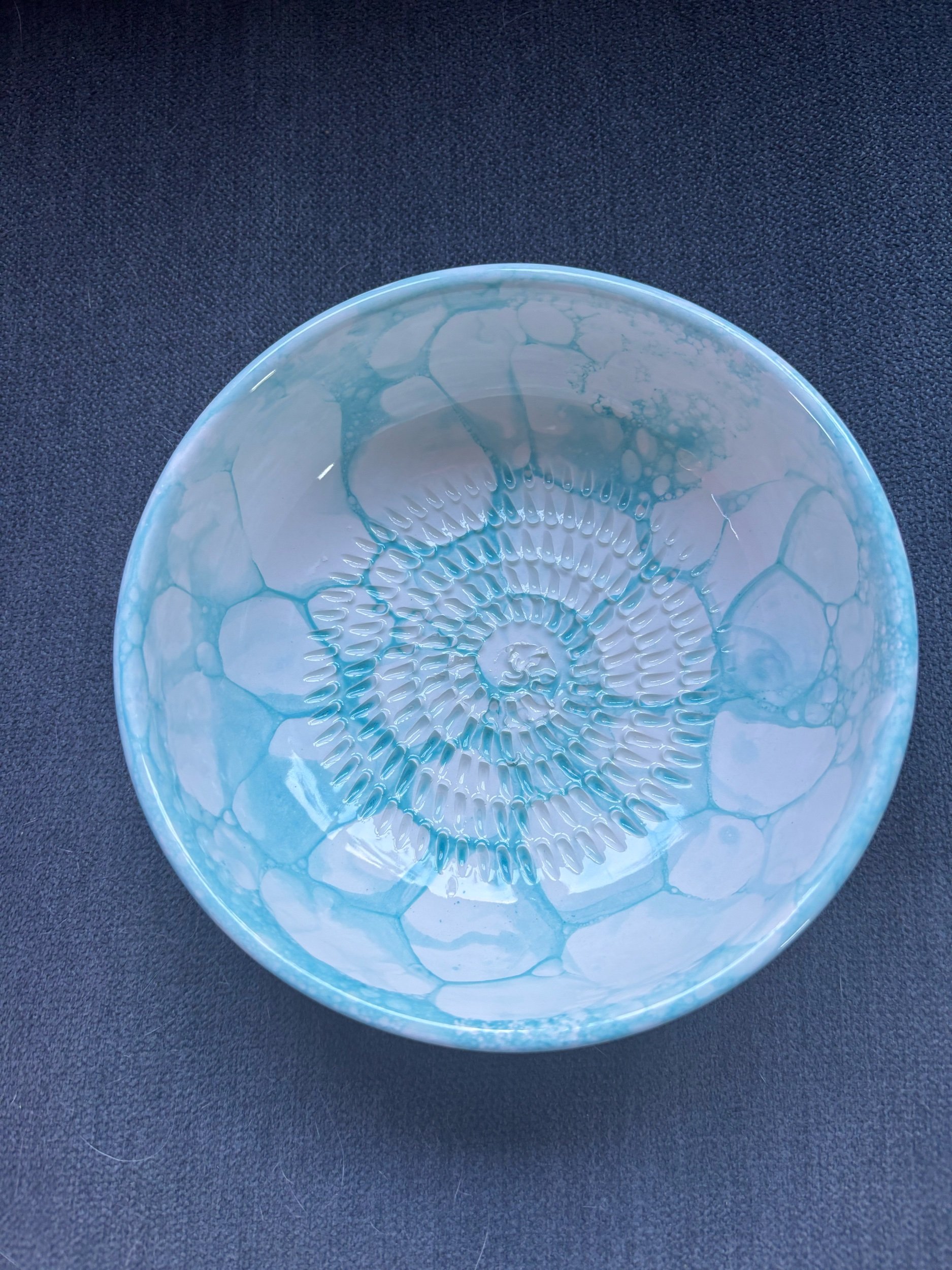 Spanish pottery garlic rasp, ginger, chocolate, nutmeg, tomato, onion, cucumber grater. Blue and white ceramic grater bowl. Turquoise bowl