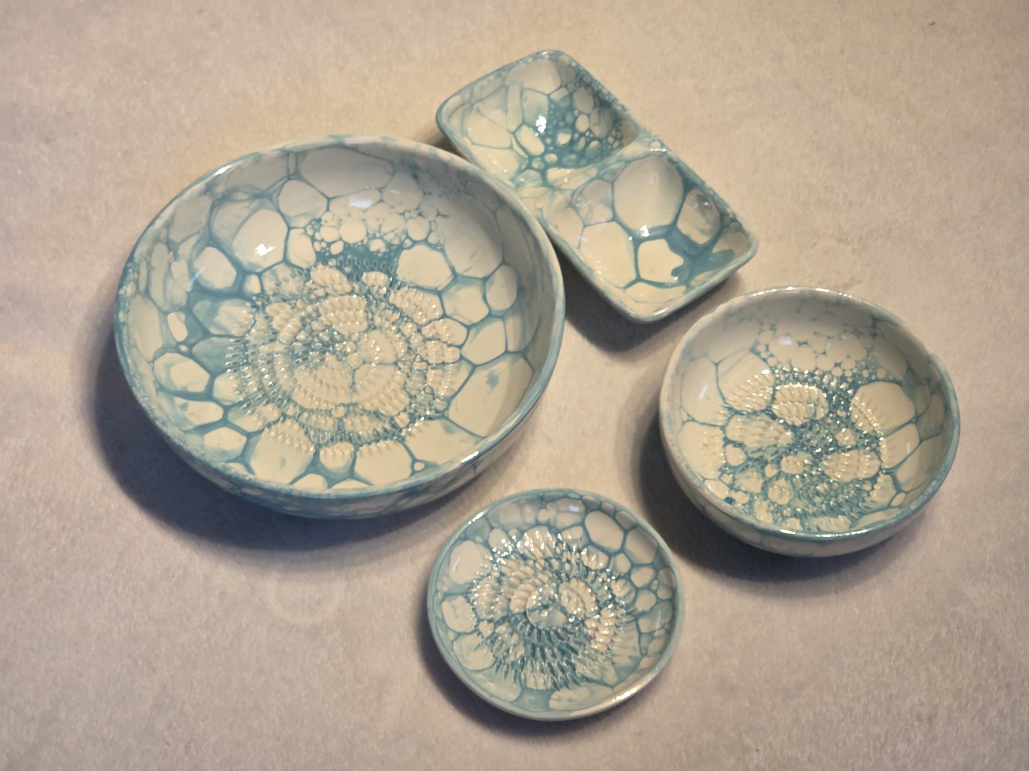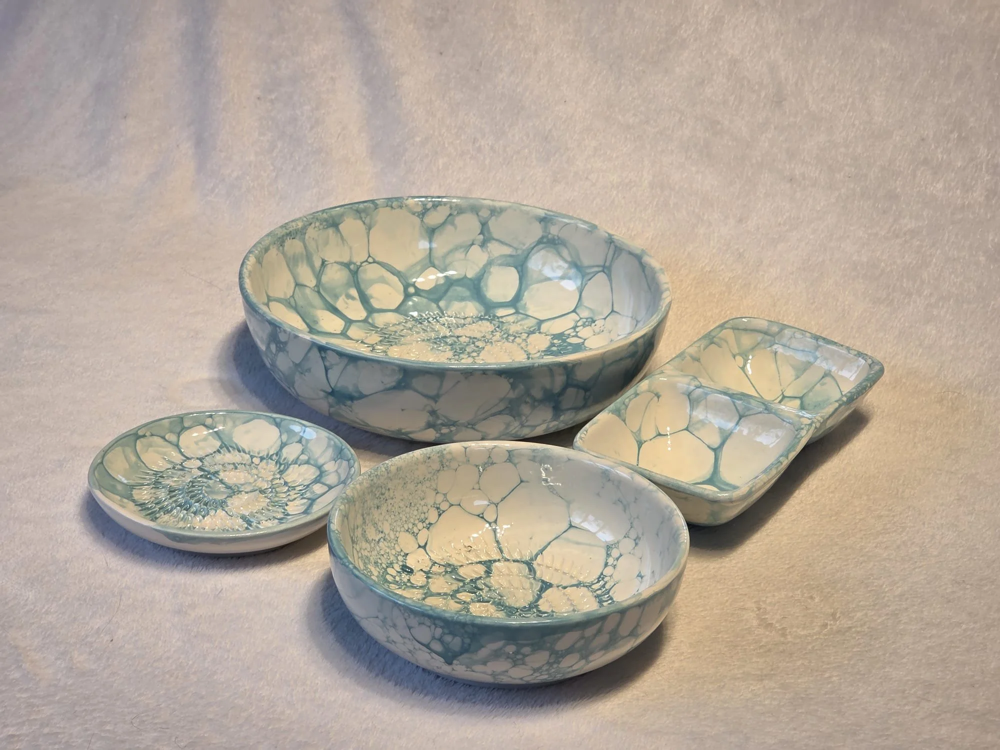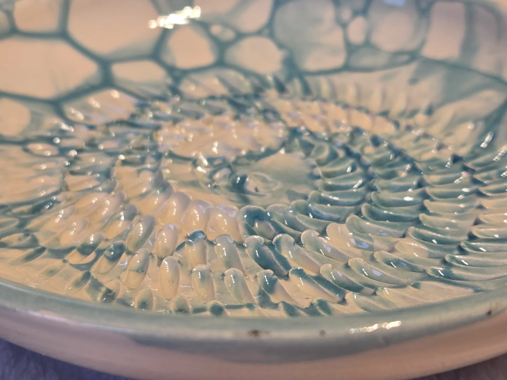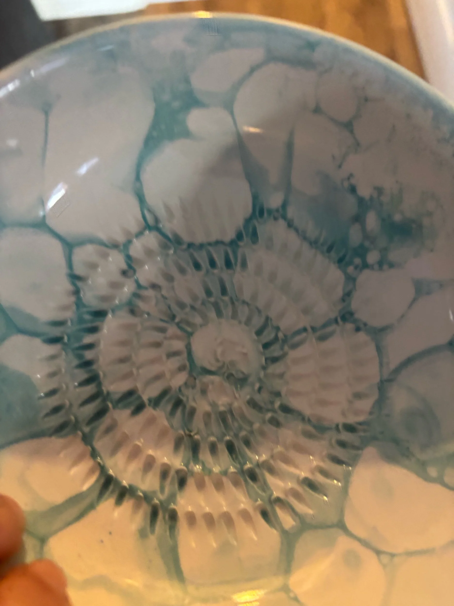 Spanish pottery garlic rasp, ginger, chocolate, nutmeg, tomato, onion, cucumber grater. Blue and white ceramic grater bowl. Turquoise bowl