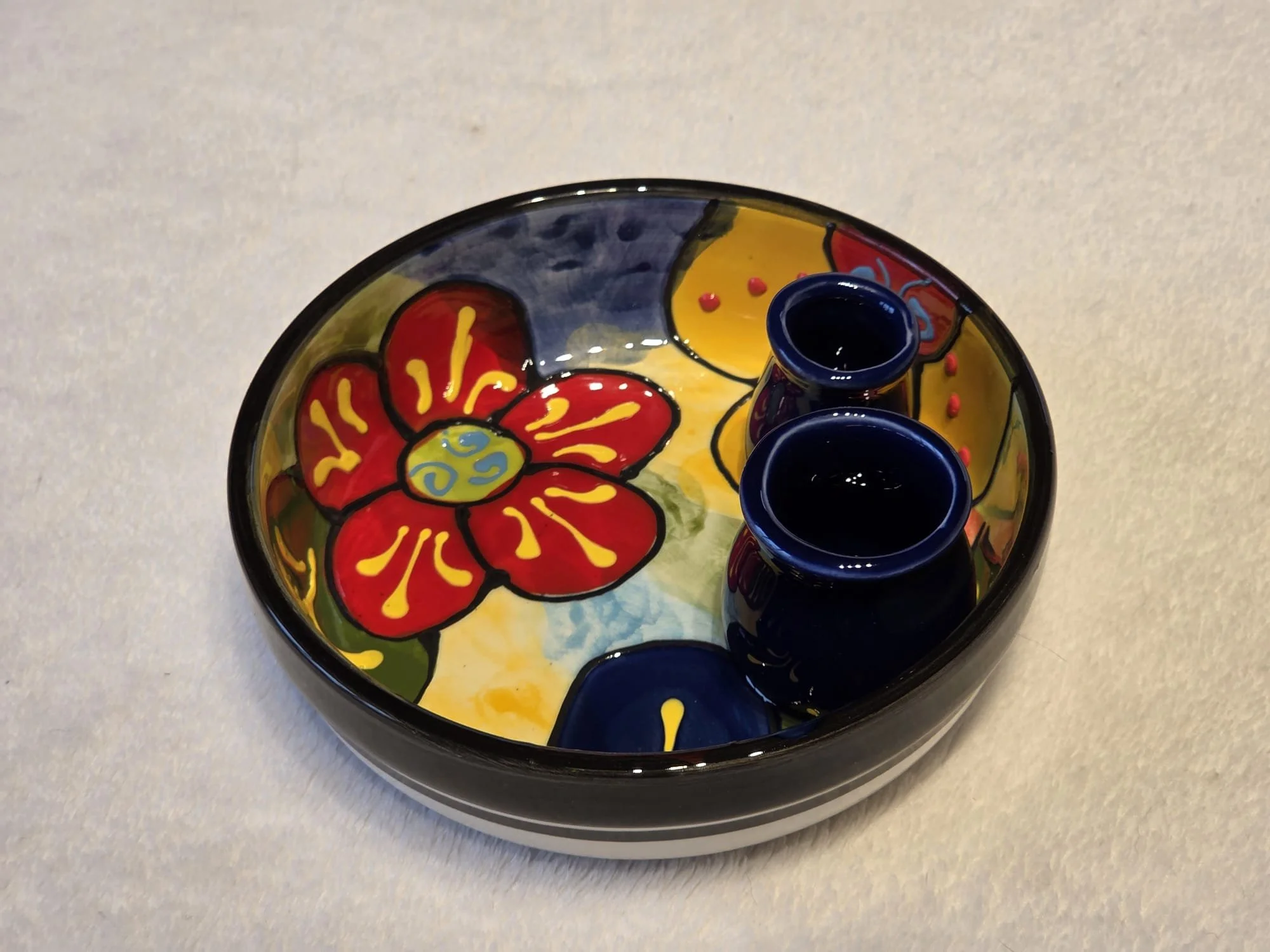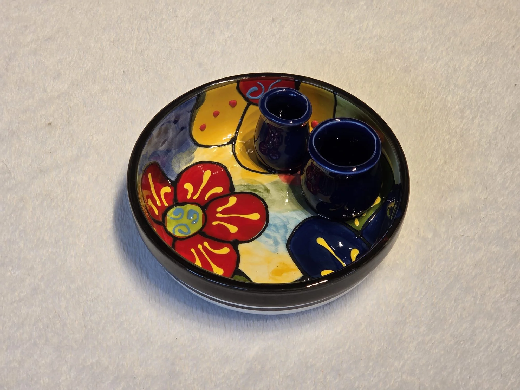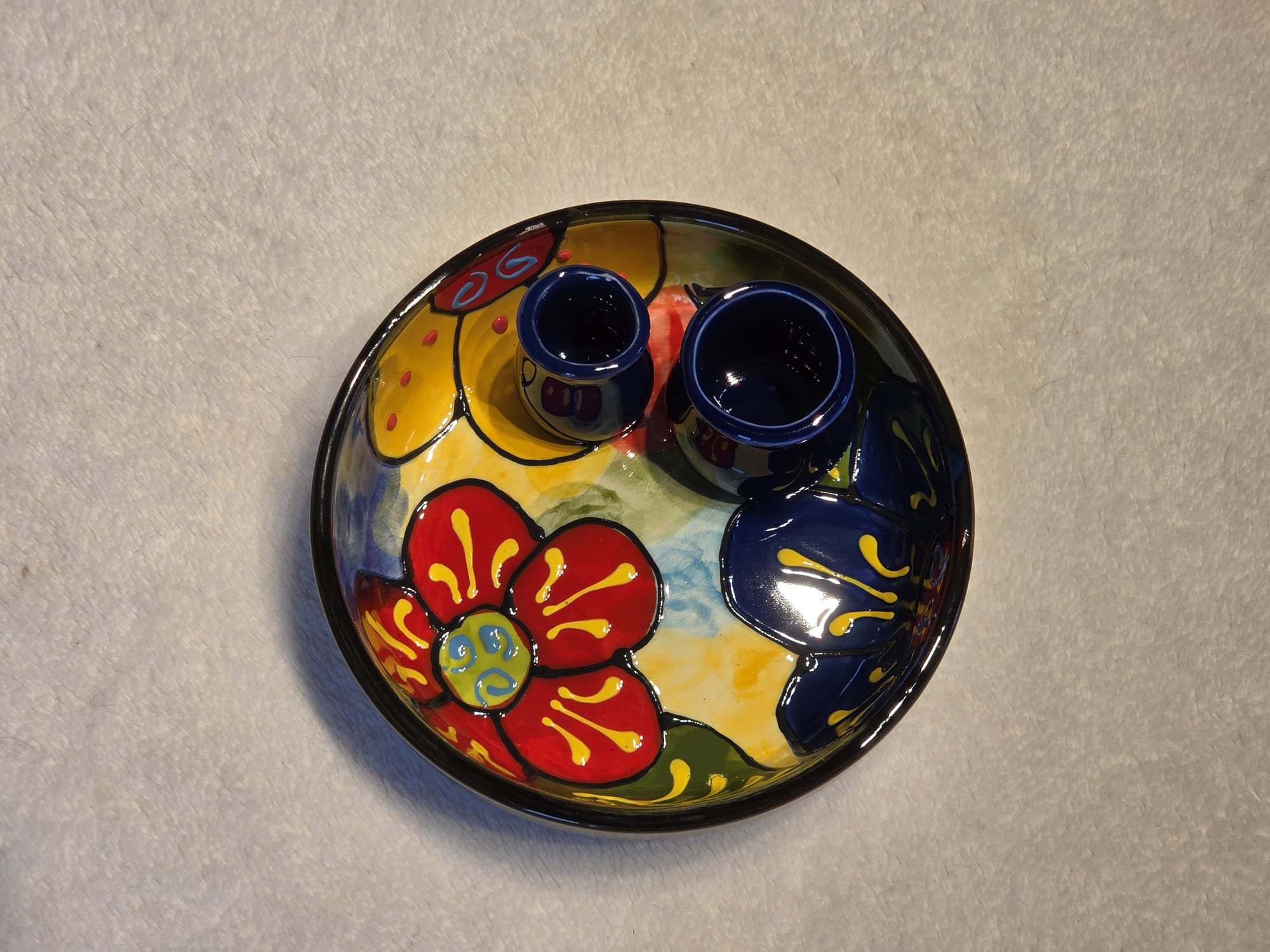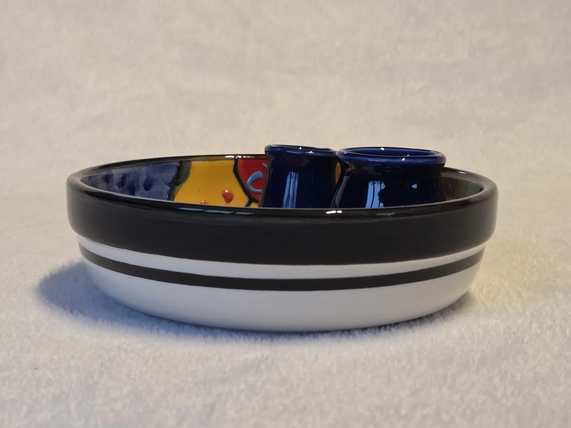 Spanish Pottery handpainted olive bowl with space for sticks and stones.