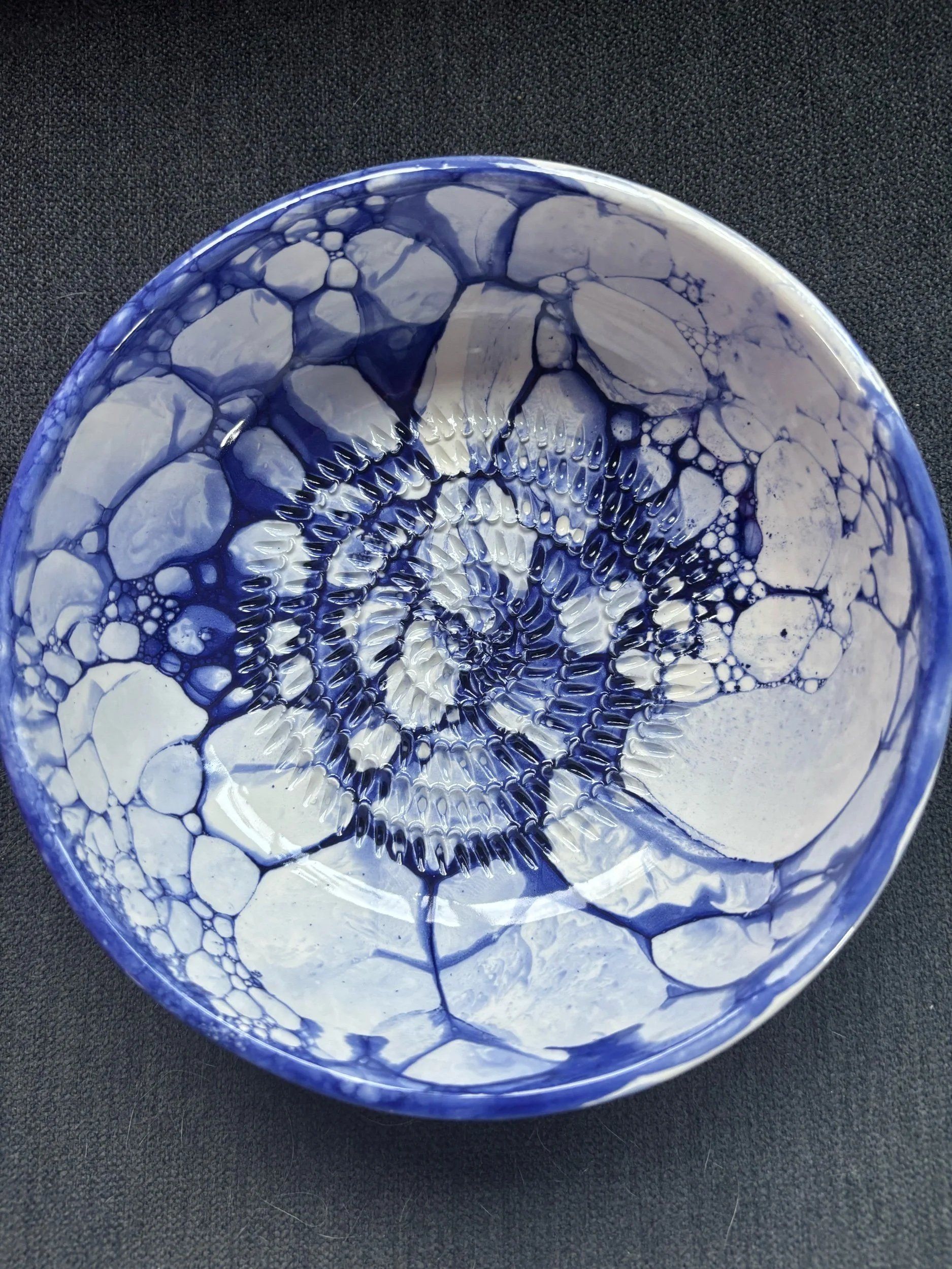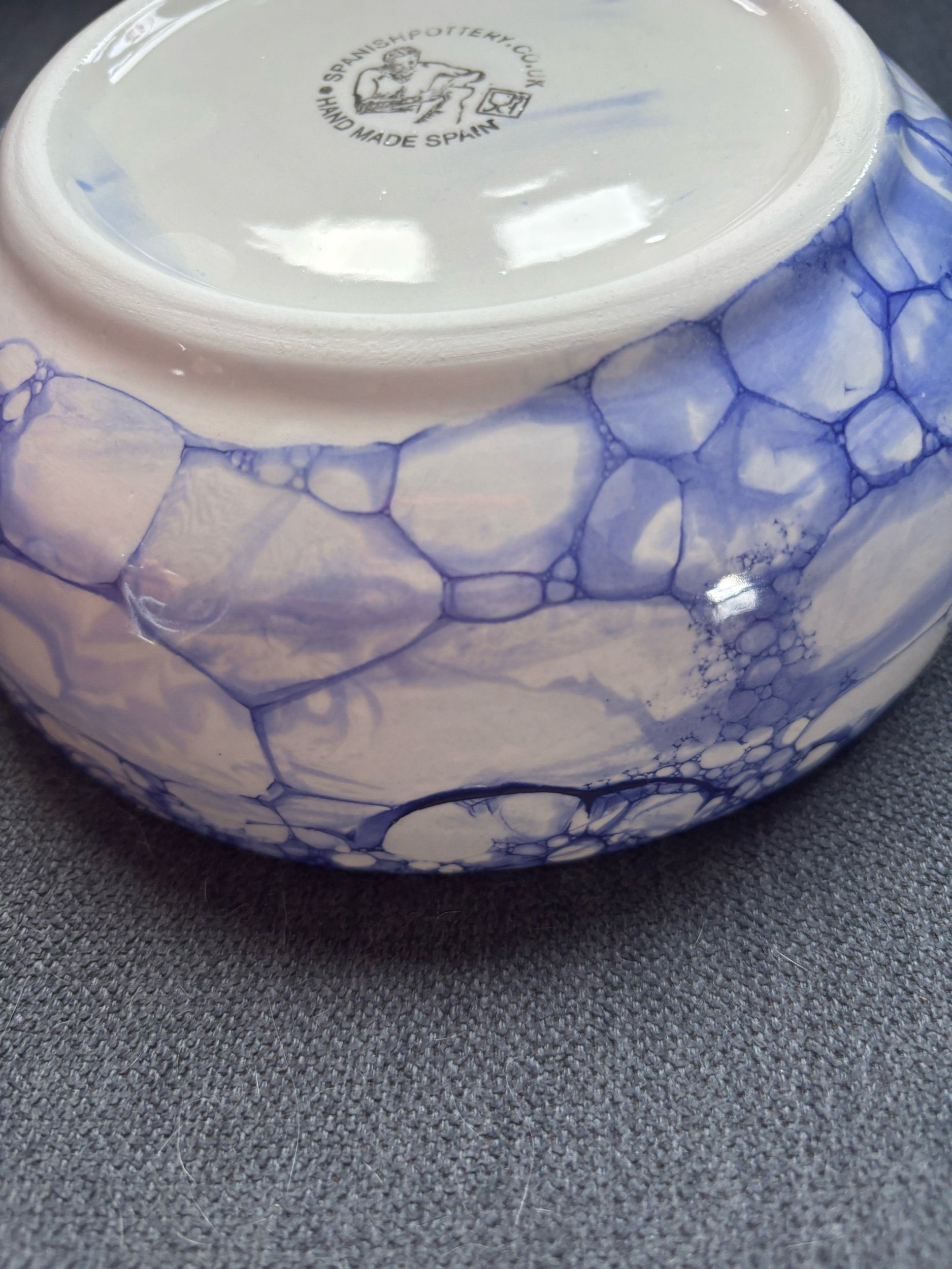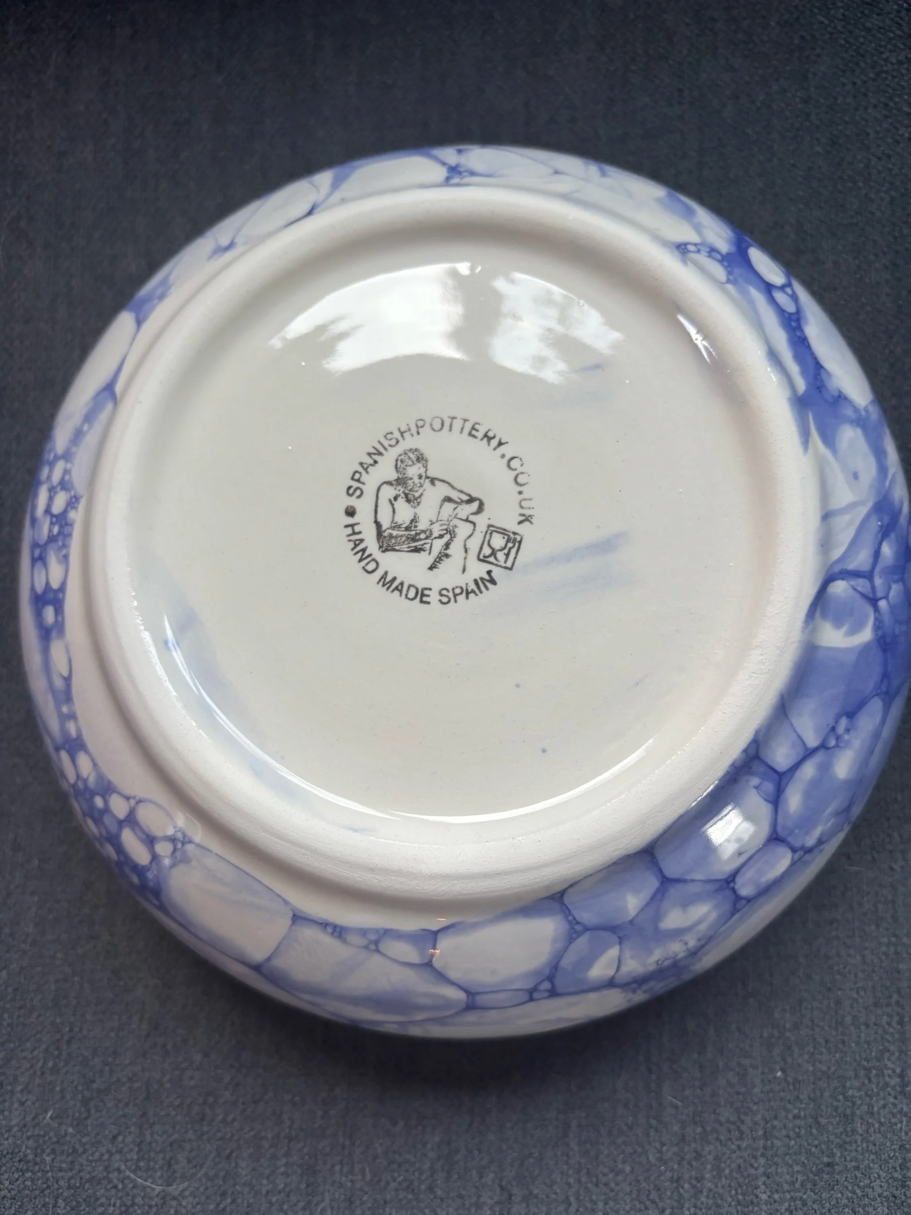 It was handmade in the south of Spain and measures 18 cm across and 6cm in height. It is dishwasher and microwave safe. We have it in different patterns also and we also have matching plates and bowls. Please feel free to message us if you have any questions.