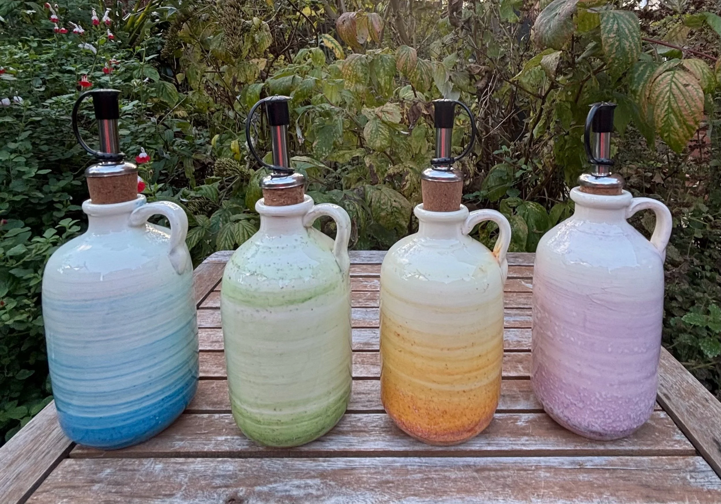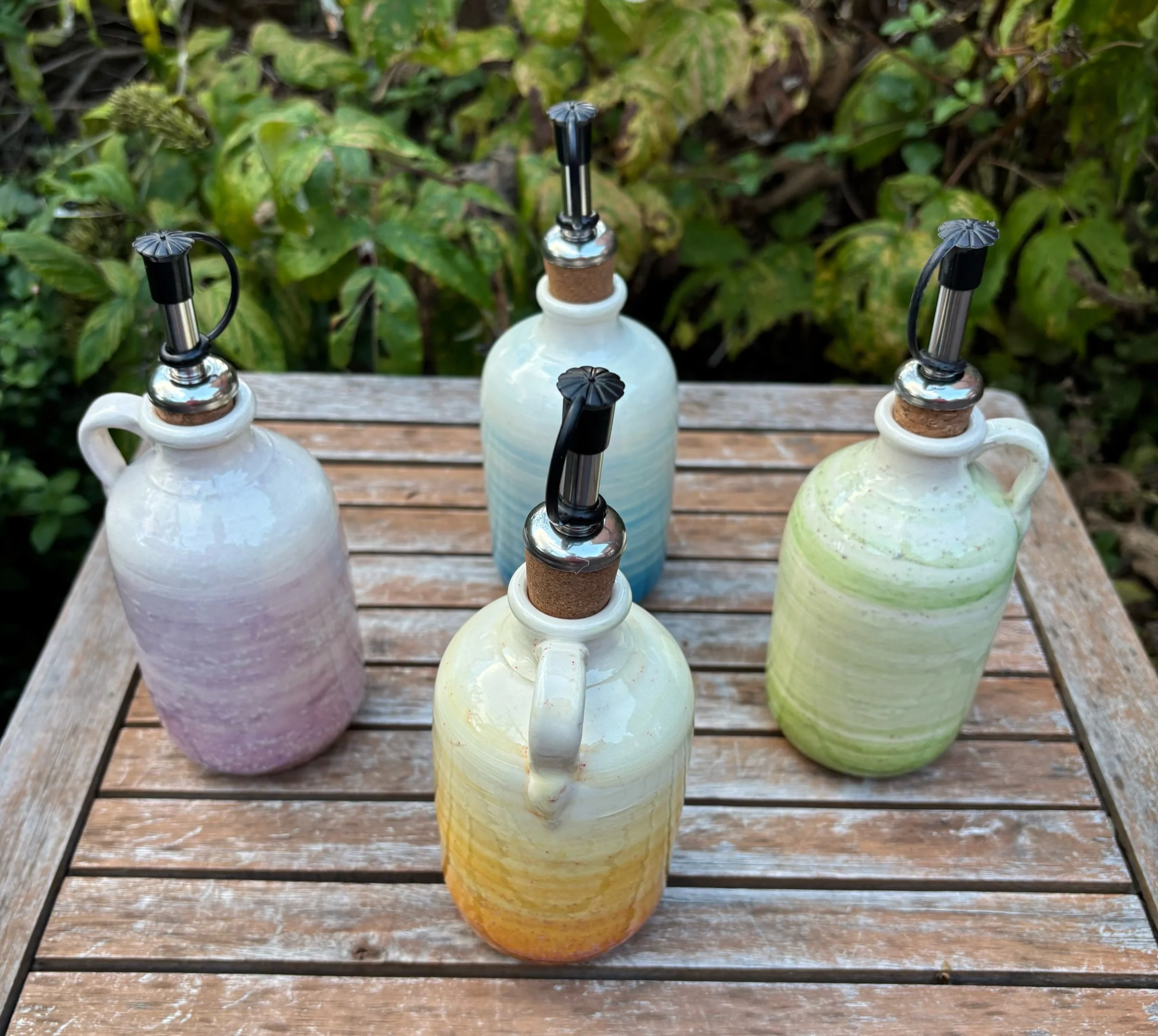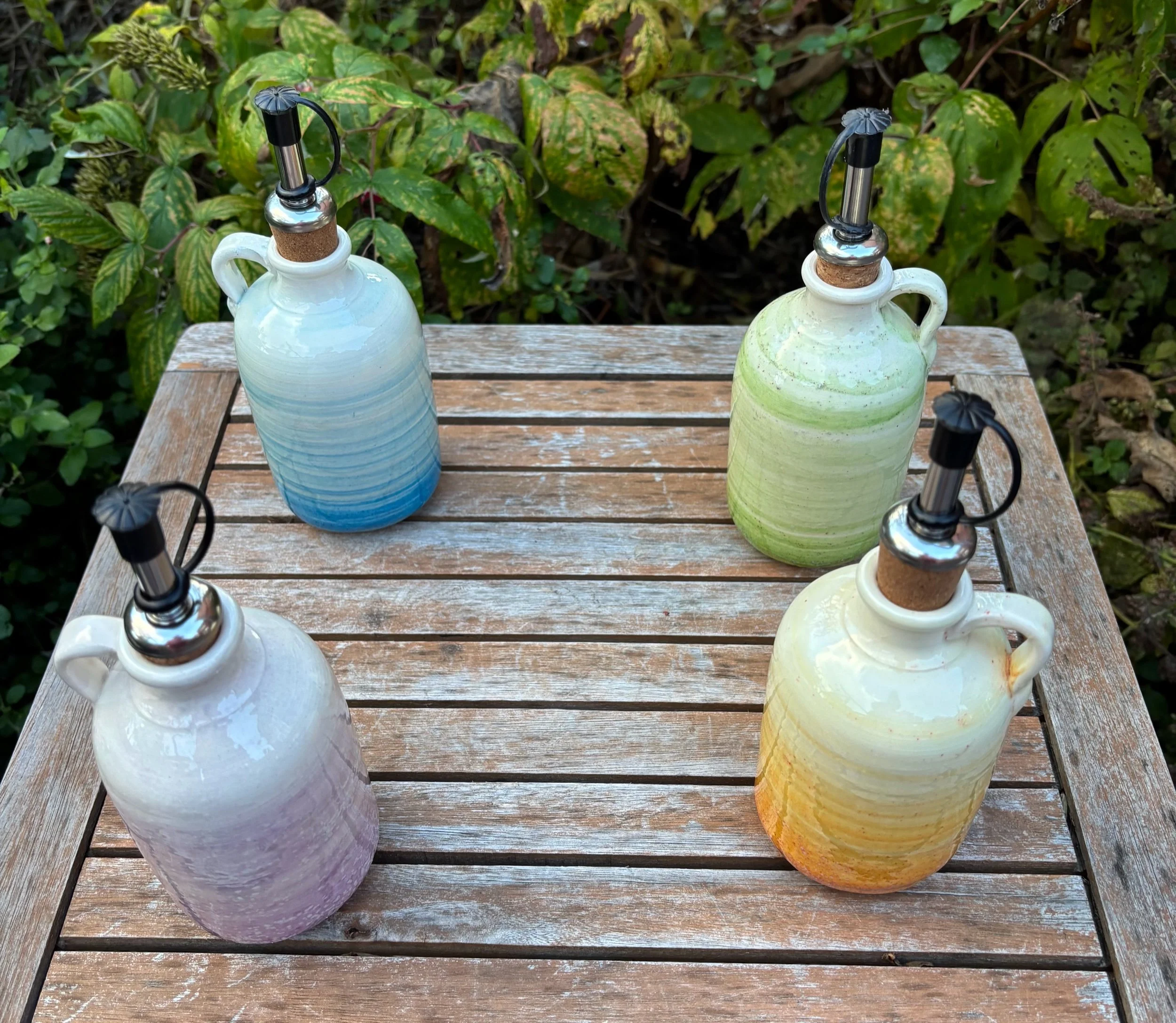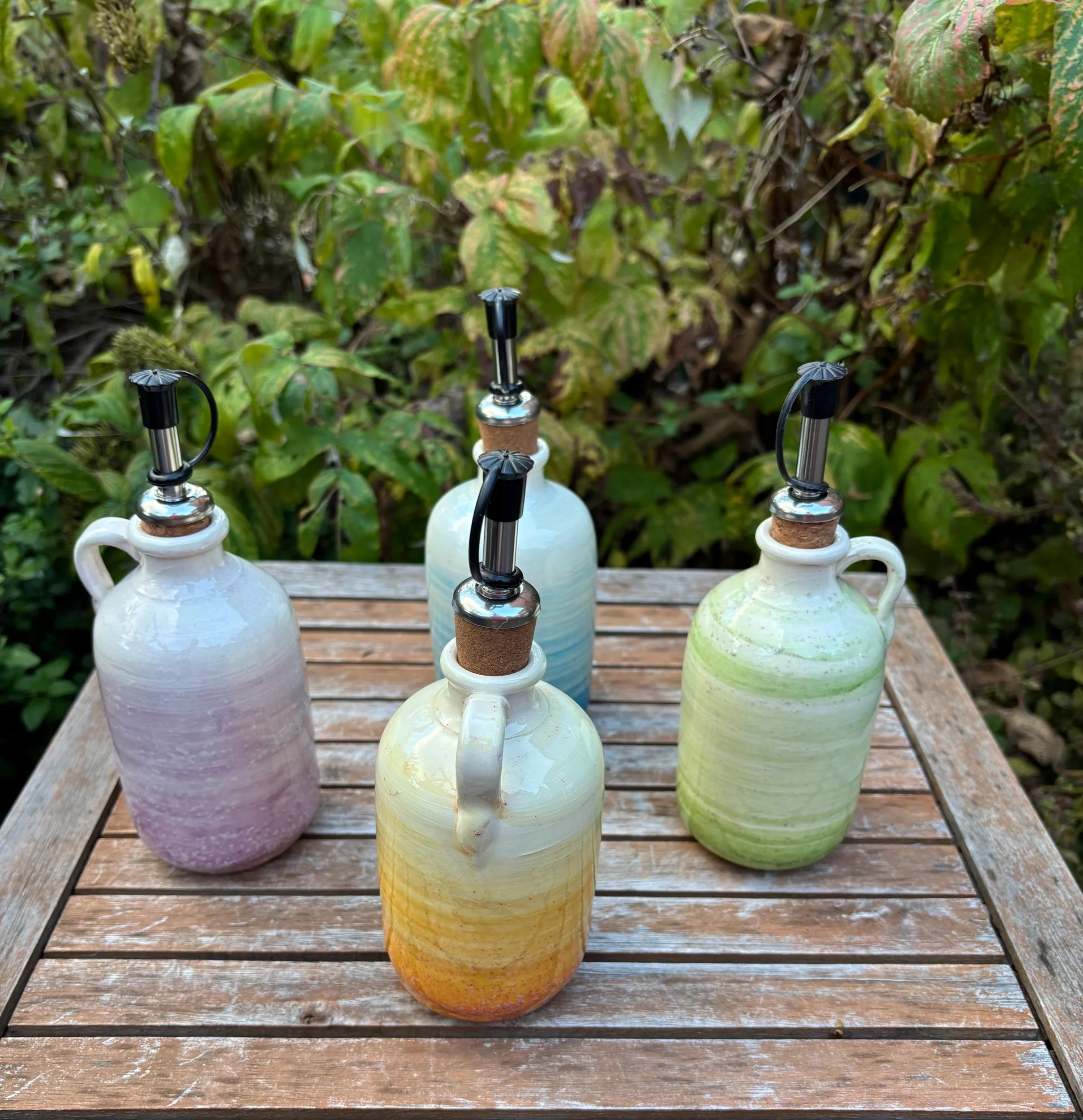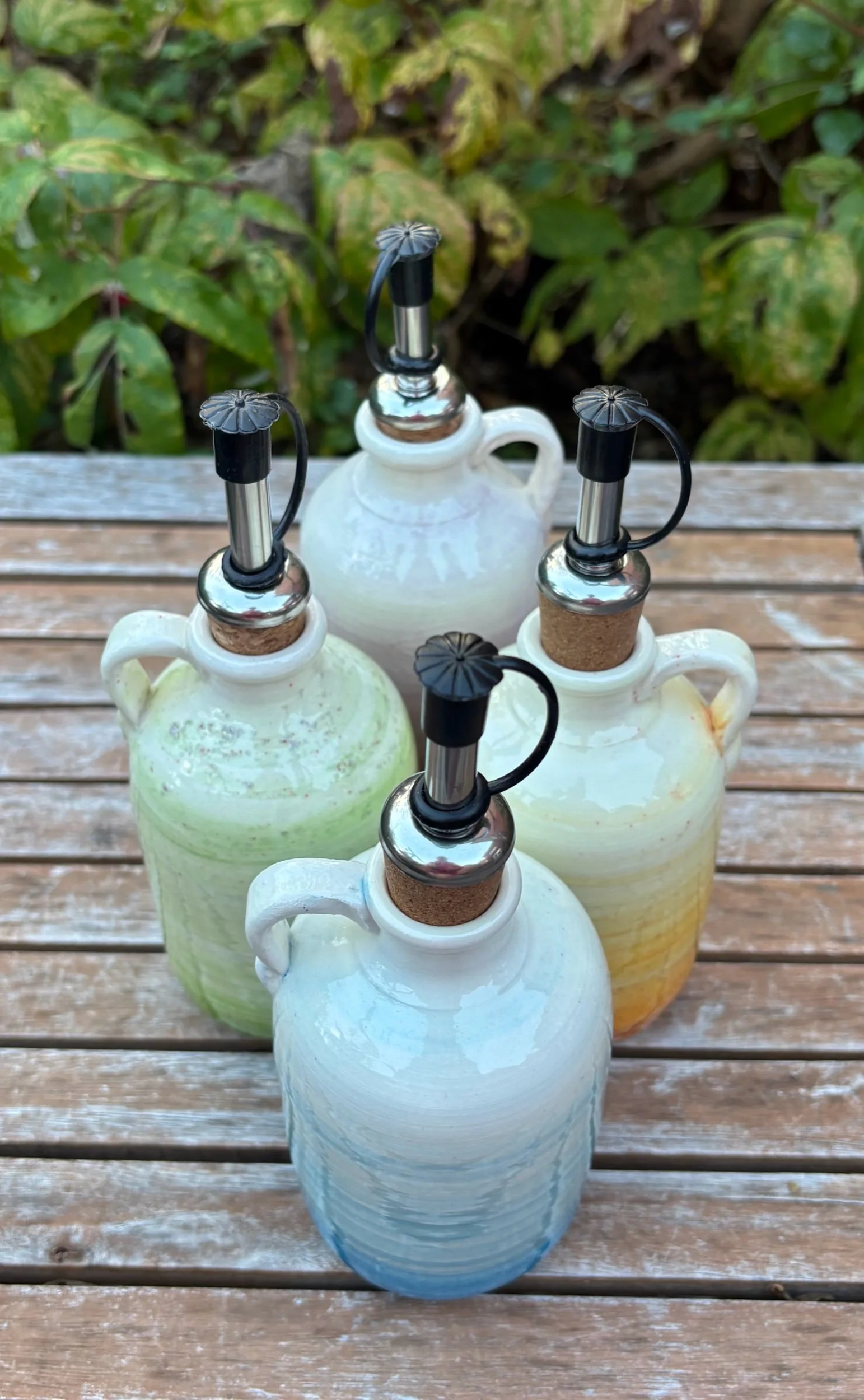 Spanish hand painted ceramic oil or vinegar drizzlers - 4 - green, blue, pink, orange