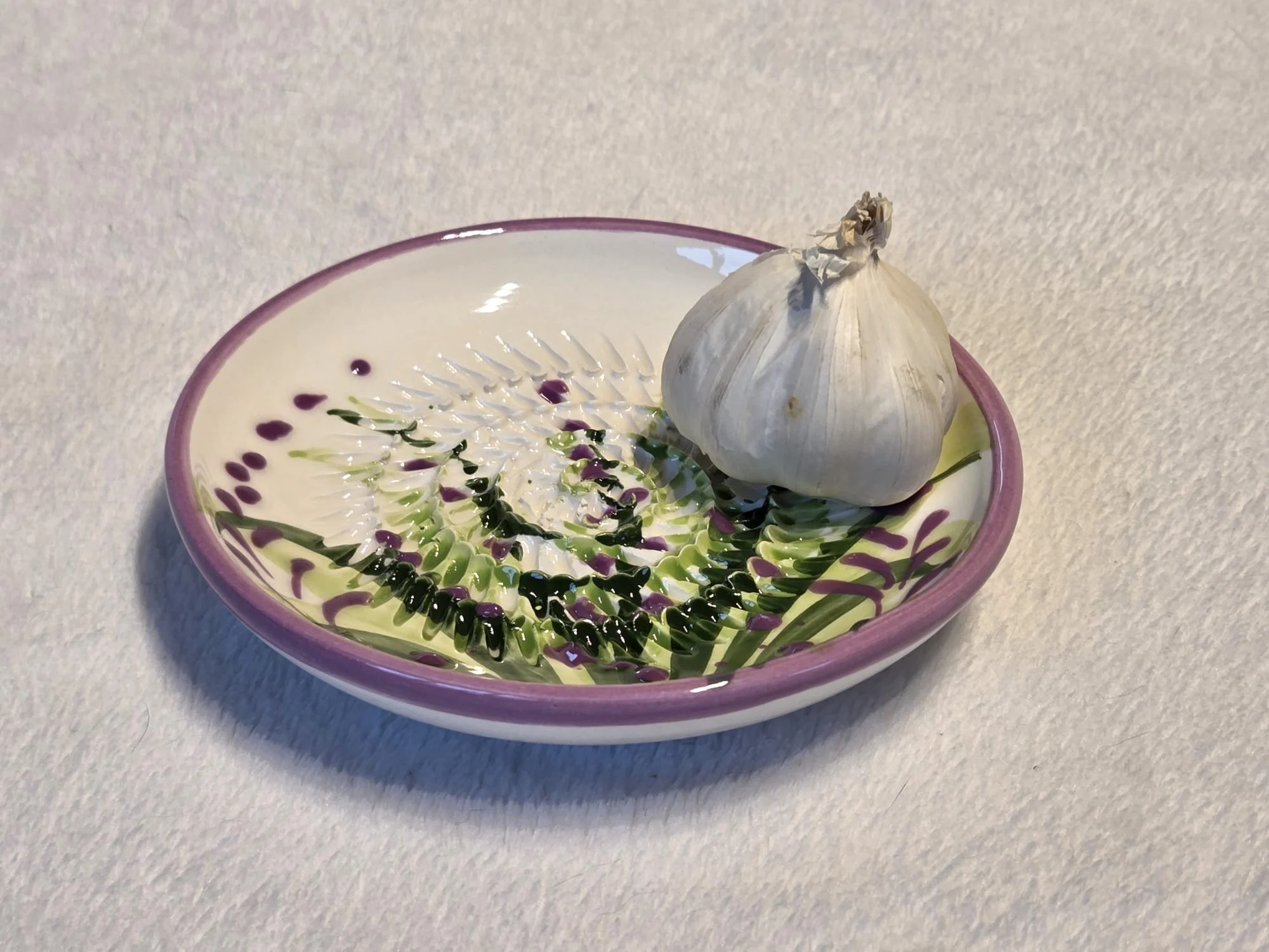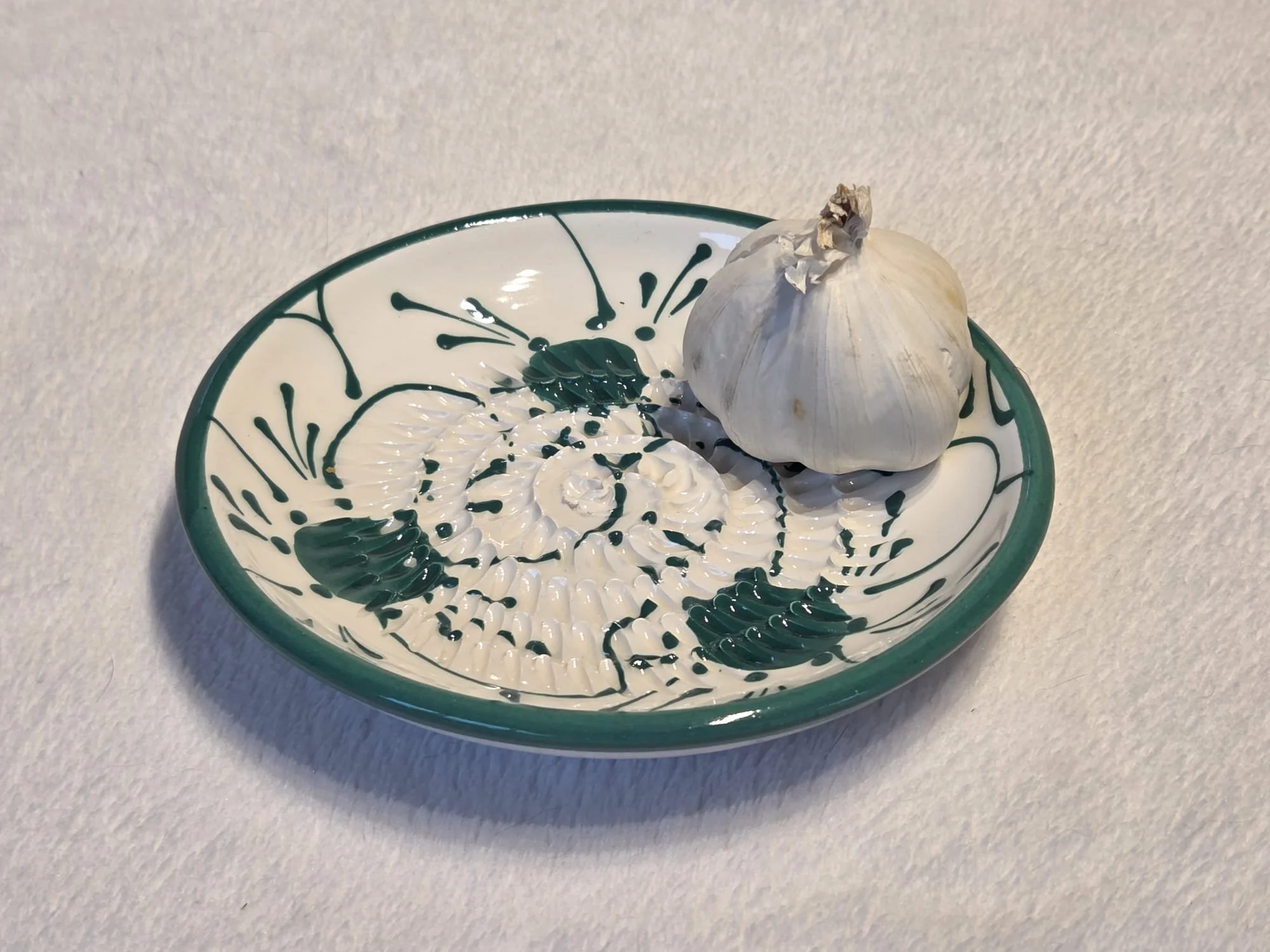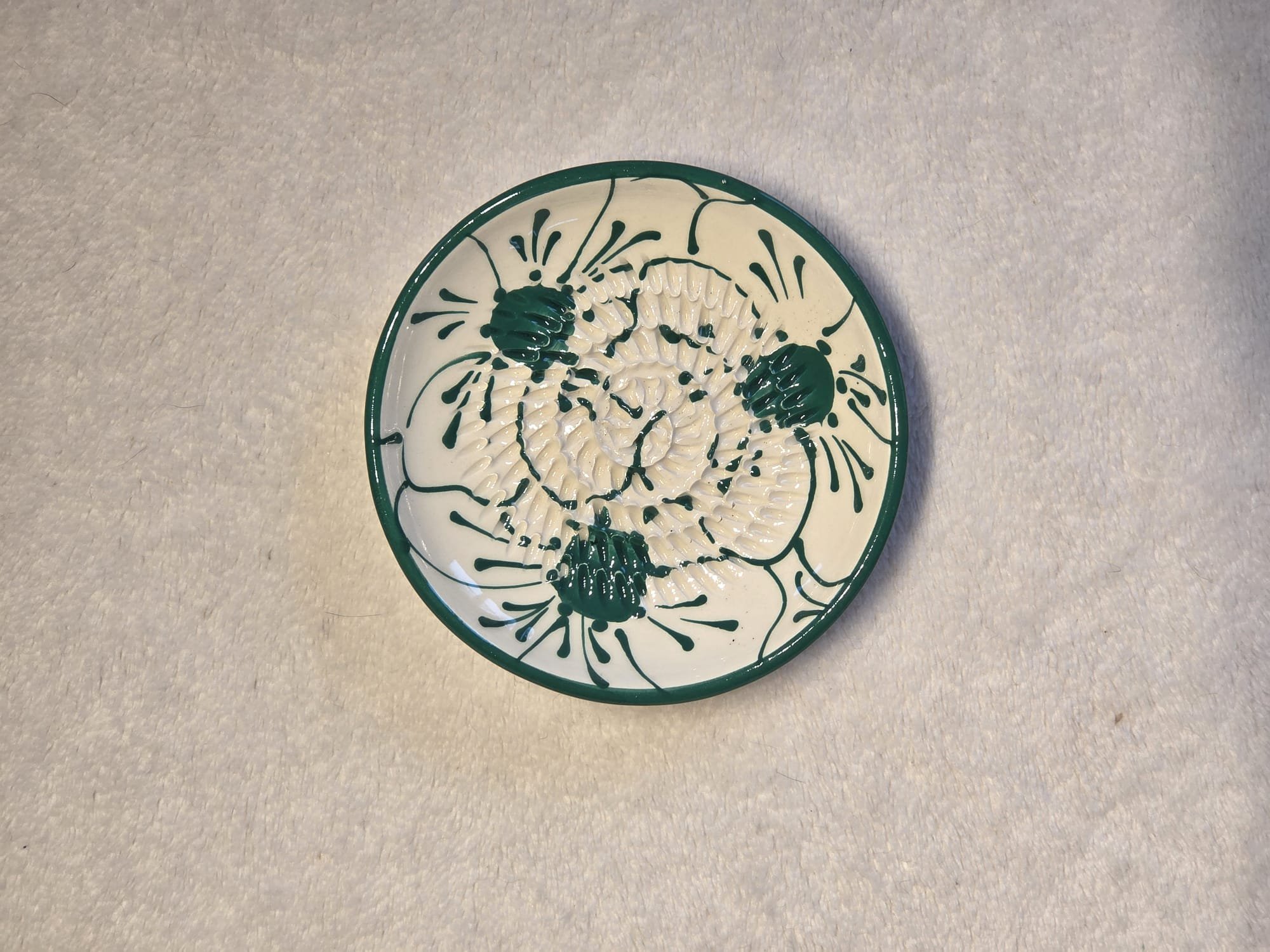 Spanish pottery garlic rasp, ginger grater green ceramic plate