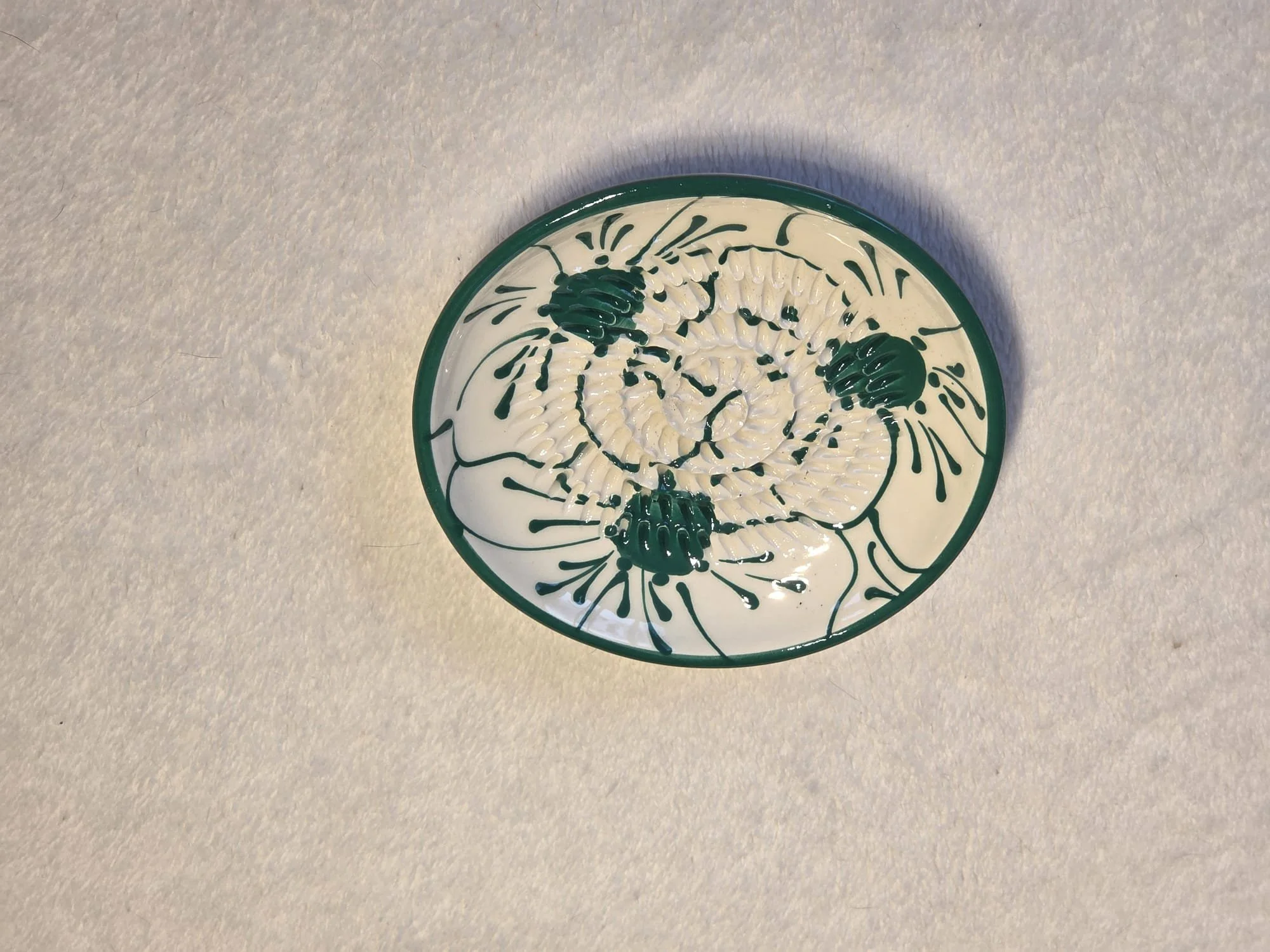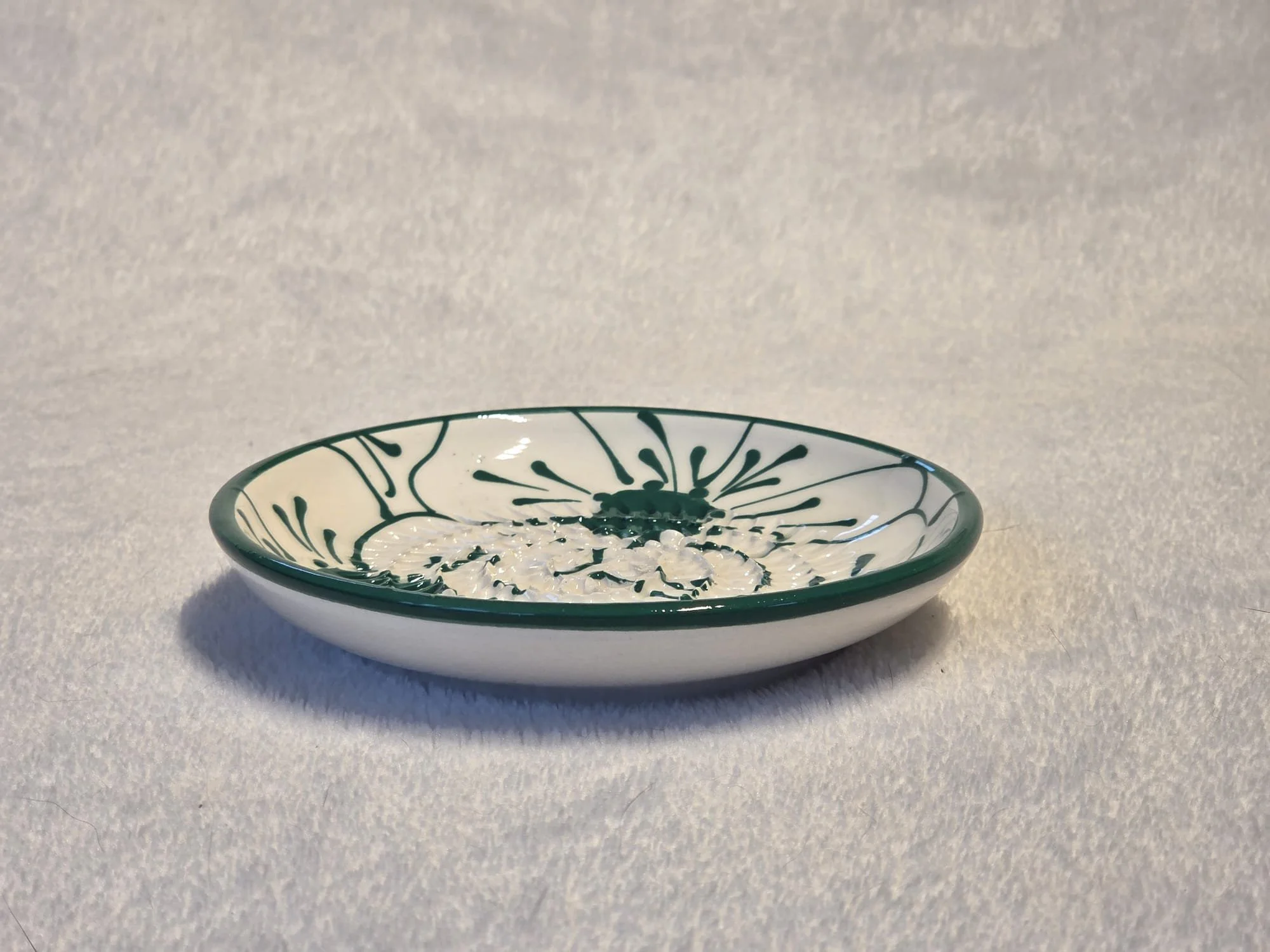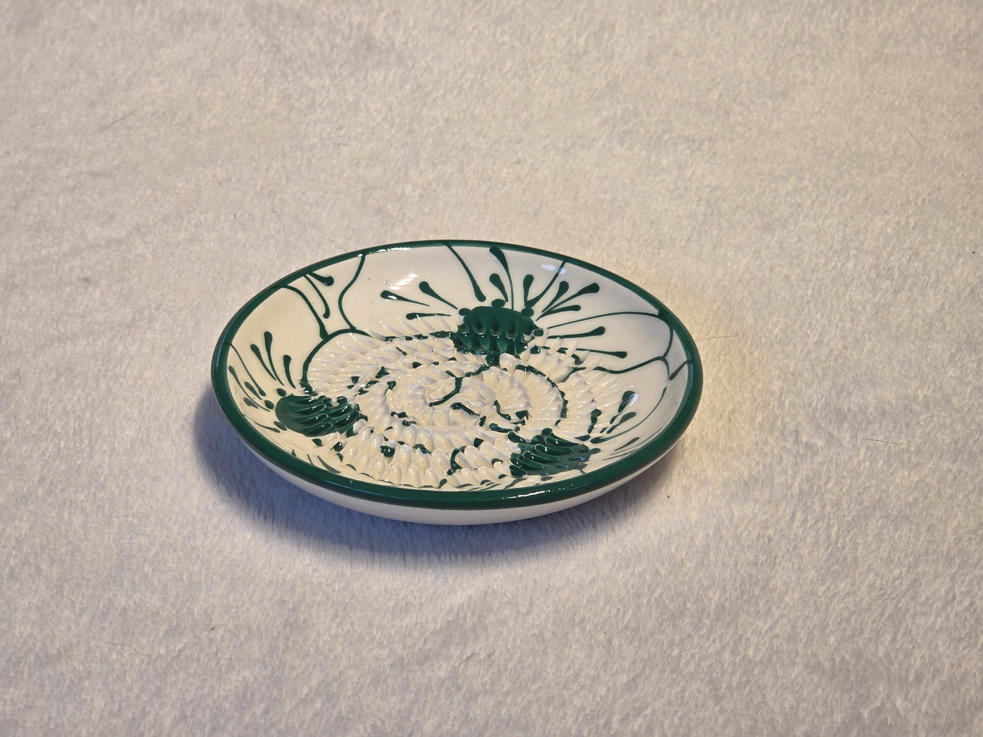 Spanish pottery garlic rasp, ginger grater green ceramic plate