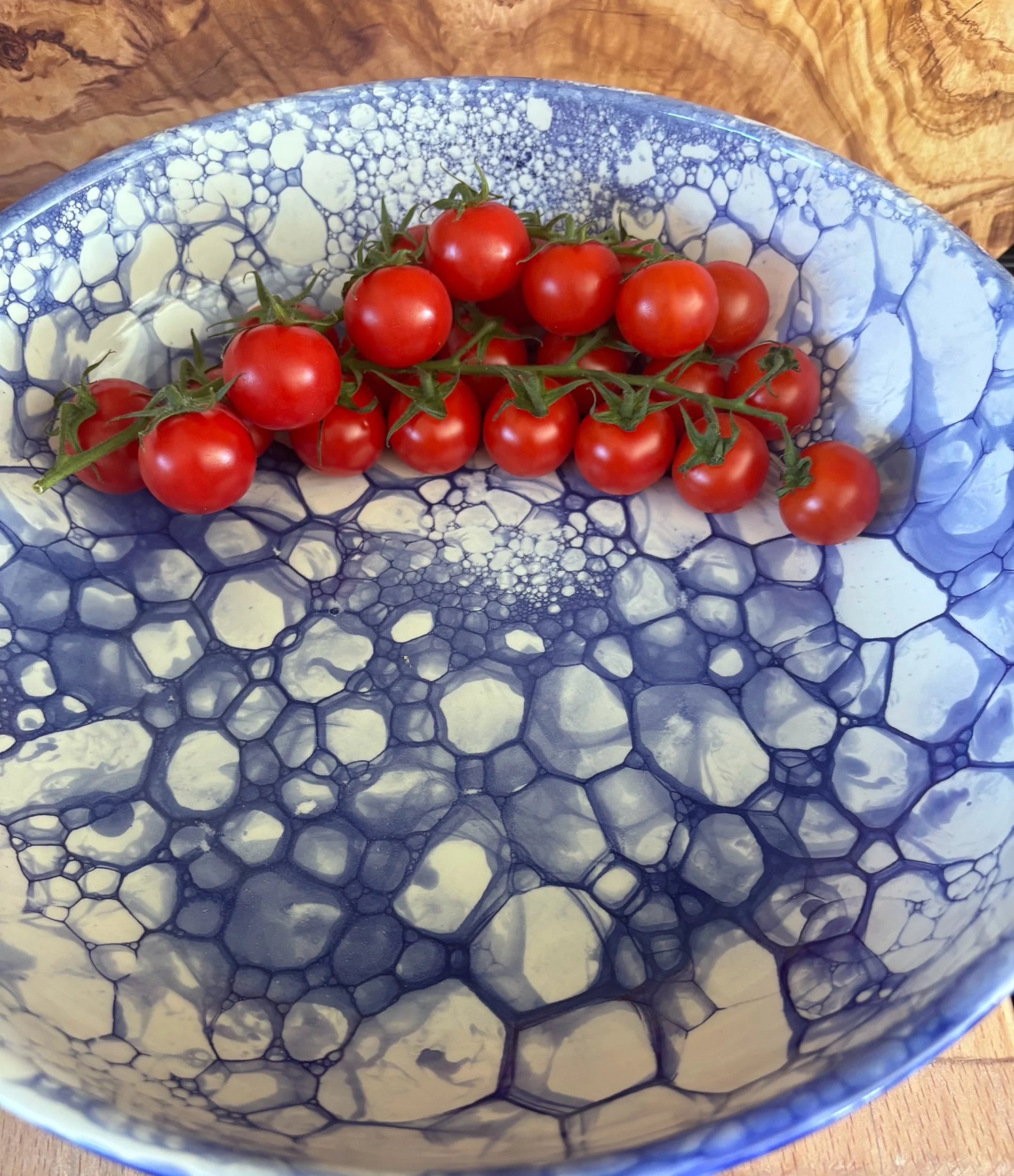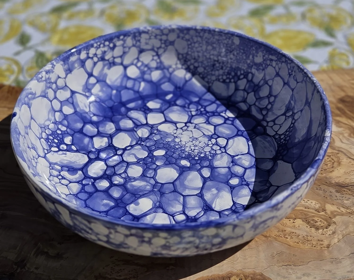 ๐ The rich blue glaze provides a sophisticated backdrop for the signature bubble pattern. It adds instant "mood" and elegance to any kitchen or dining room.
