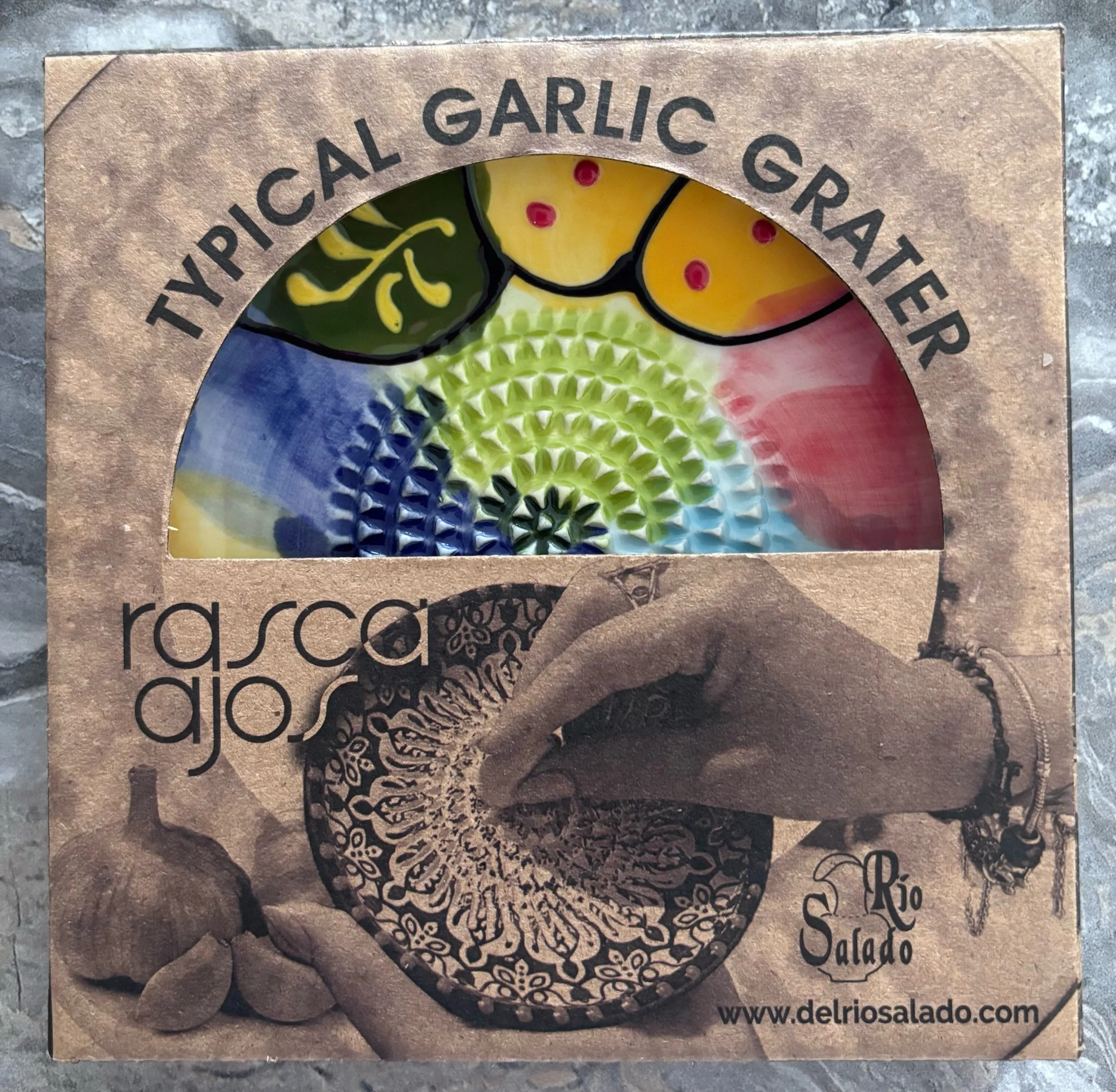 This hand-painted Spanish garlic grater makes prepping fresh ingredients effortless. Just rub garlic or ginger over the textured surface for a perfect paste in seconds.