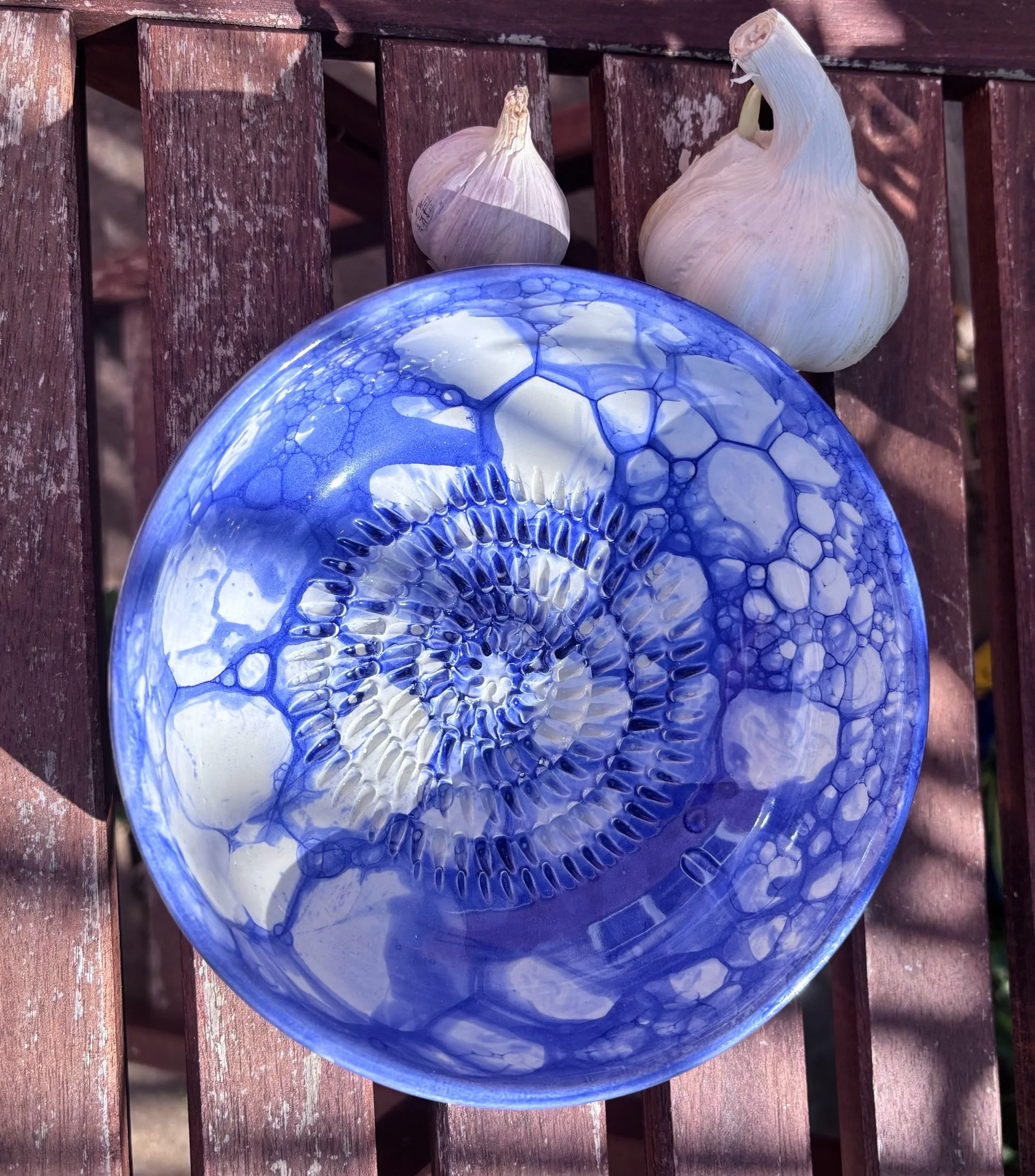 Dark Blue Handmade Spanish Ceramic Garlic Grater Bowl
