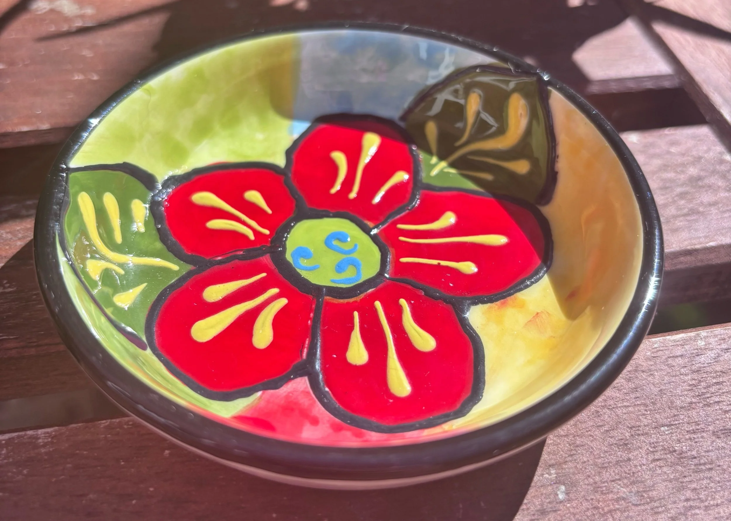 Traditional Spanish pottery hand-painted spoon rest in a variety of designs.