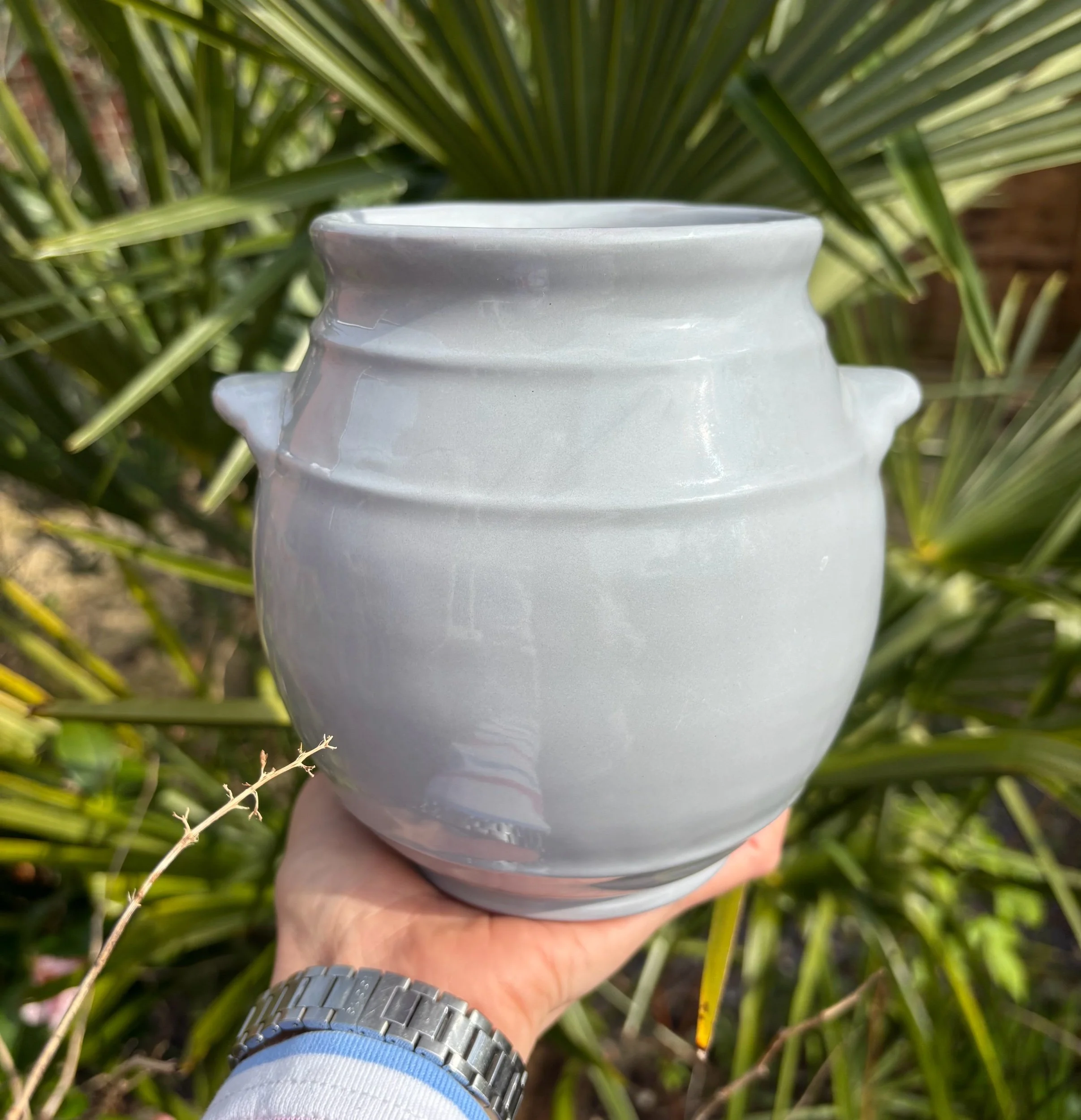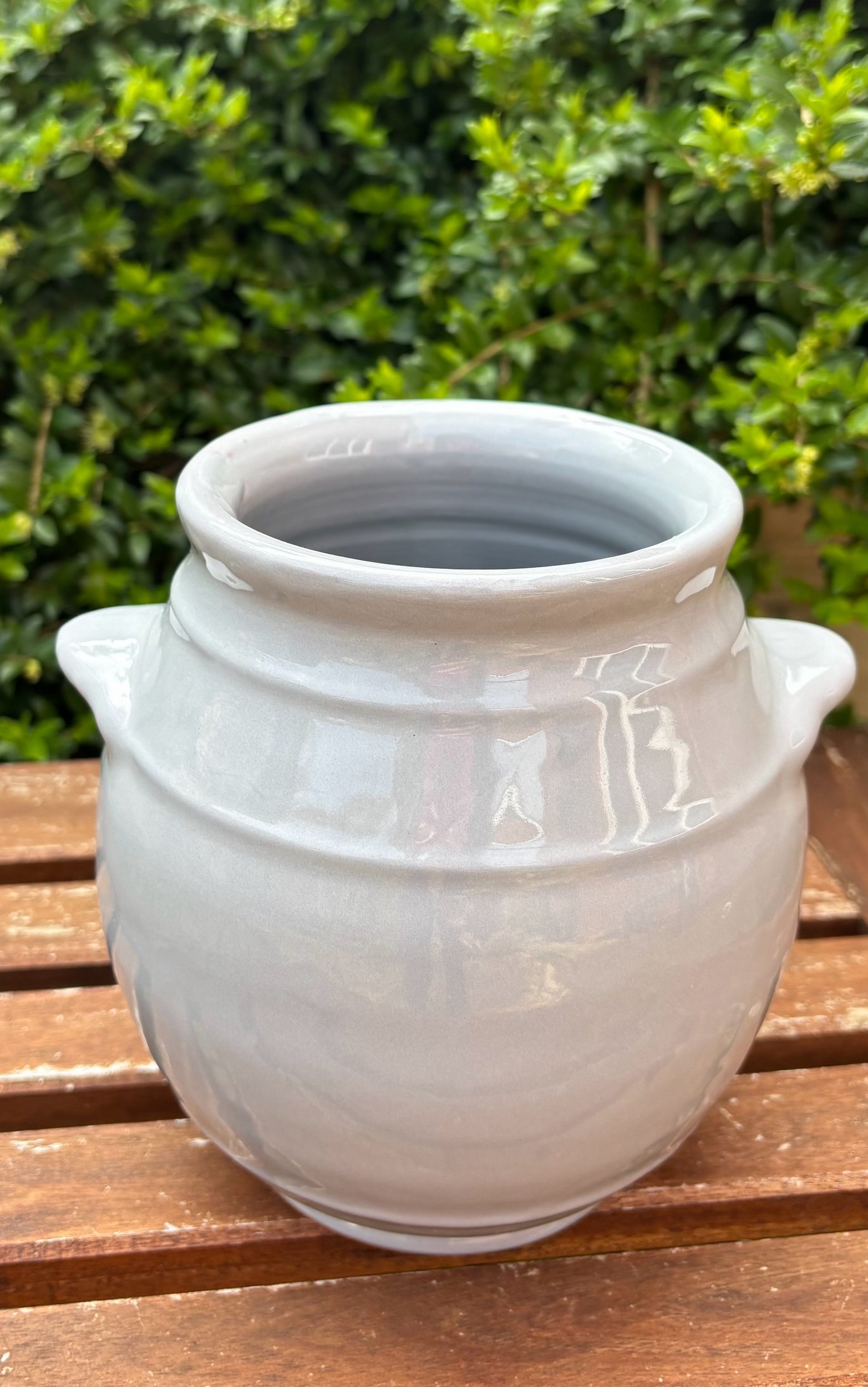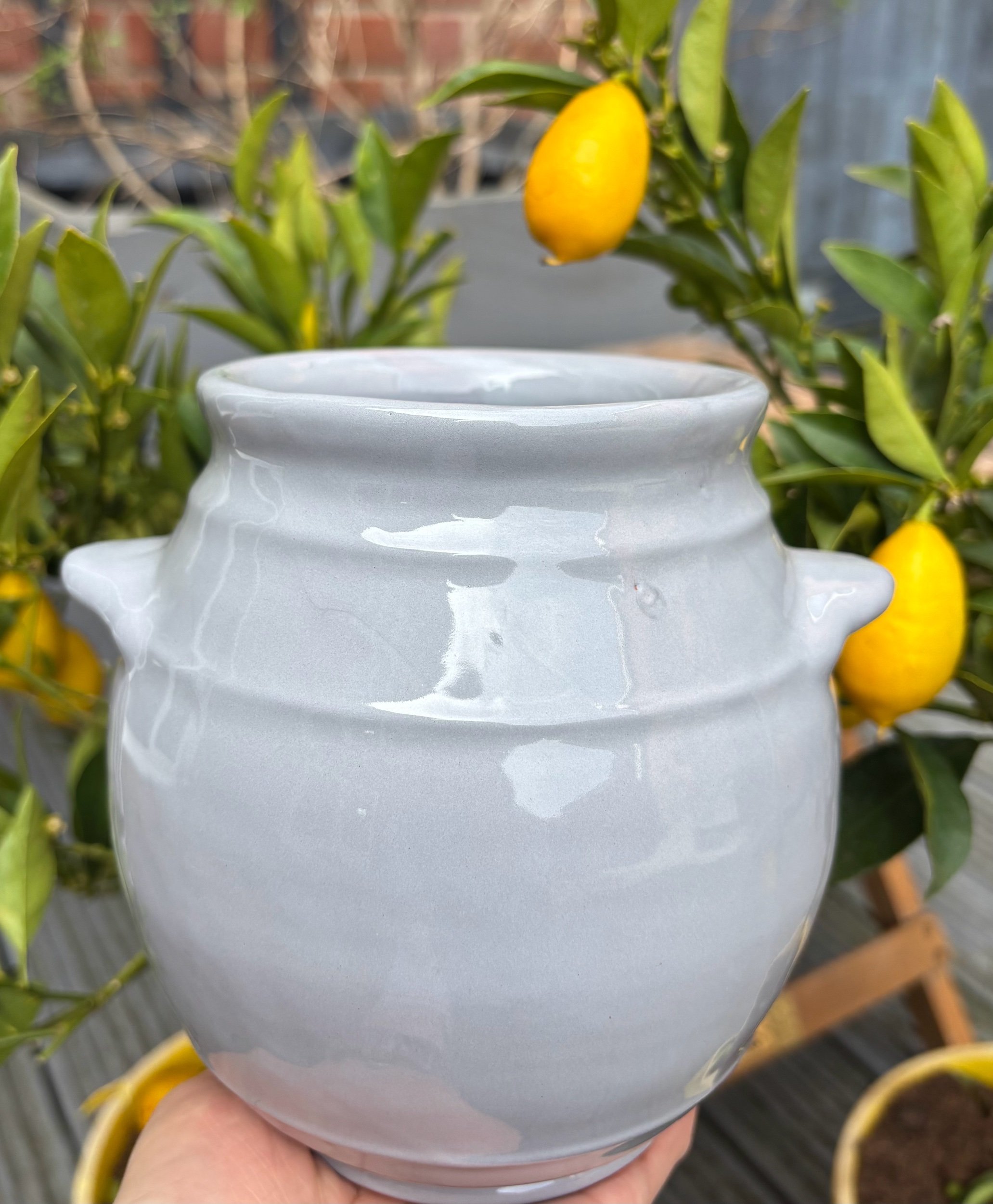 Artisan Glaze: Each piece is hand-dipped in a sophisticated grey glaze. Please note that natural light can make the grey appear lighter (as seen in our outdoor photos), highlighting its unique handmade character.