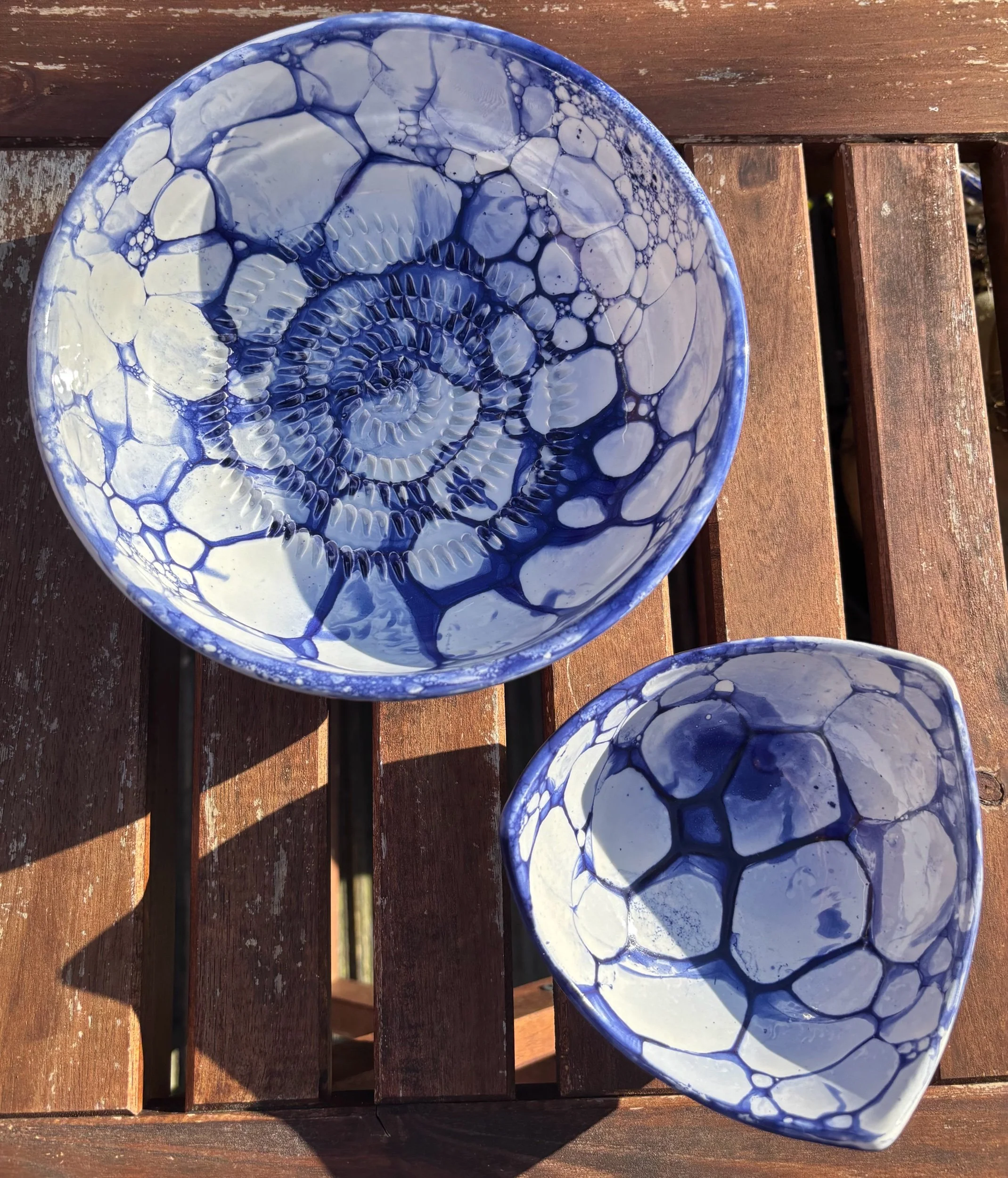 They were handmade in the south of Spain. They would be ideal as pretty bowls for jewellery or as bowls for snacks like nuts, olives, quails eggs, nuts etc